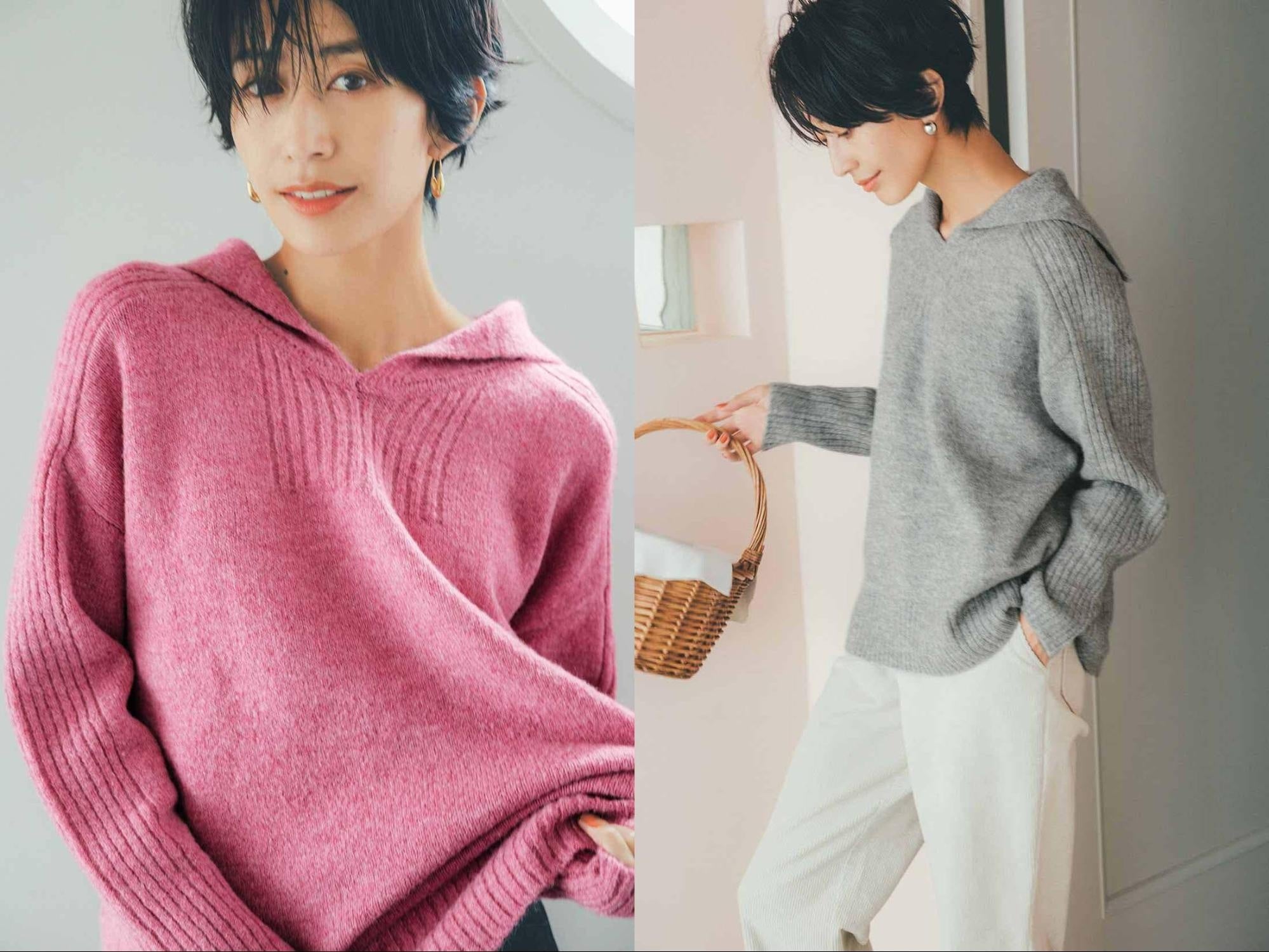 愛らしさを背中で語る、セーラーカラーの冬色ニット