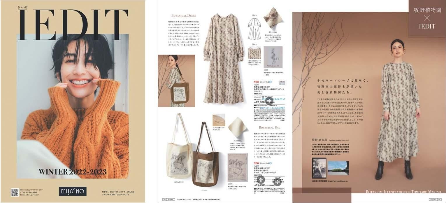 フェリシモが展開するファッションブランド「IEDIT[イディット]」は、高知県立牧野植物園とのコラボレーション新作を発表、10月20日よりウェブ販売を行っています。コラボ第2弾となる今回は、牧野富太郎博士が描いた「一歳桃のロングワンピース」と、キダチニンドウの植物図をプリントした「トートバッグ」の2アイテムが登場。新作アイテムの詳細は、ウェブサイトやデジタルカタログでチェックできます。