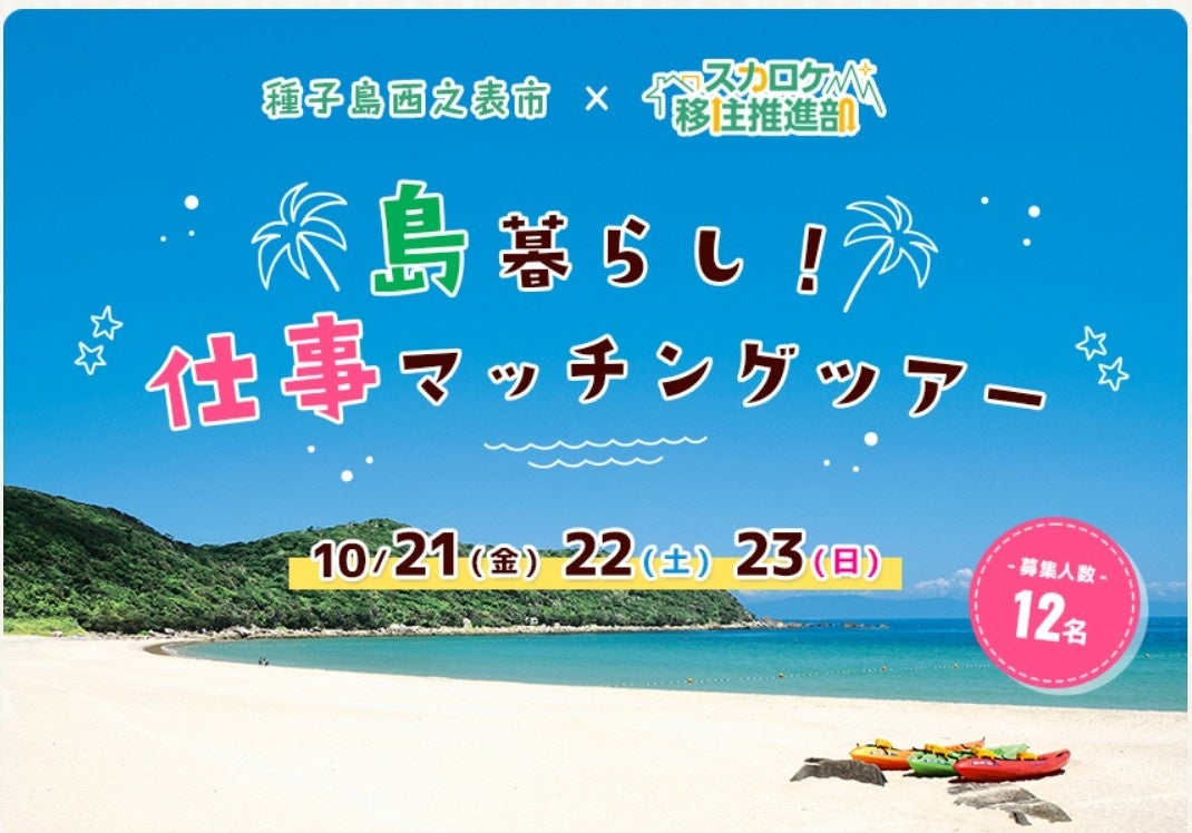 10月21日(金)~23日(日)には鹿児島県西之表市を実際に訪れる「種子島西之表市 島暮らし!仕事マッチングツアー」を開催。西之表市での就業を検討したい人を対象とした島の仕事や暮らしを現地で実際に体験するツアーです。募集期間は8月11日(木)~9月23日(金)24時、定員は12名で抽選での参加となります。そして、11月2日 (水)には、このツアーの参加者も含め、島ぐらしに興味がある方のオンライン交流会を行います。参加者同士の感想の交換や、実際に現地を訪れて、改めて感じた疑問や質問などにお答えする等の内容を実施します。