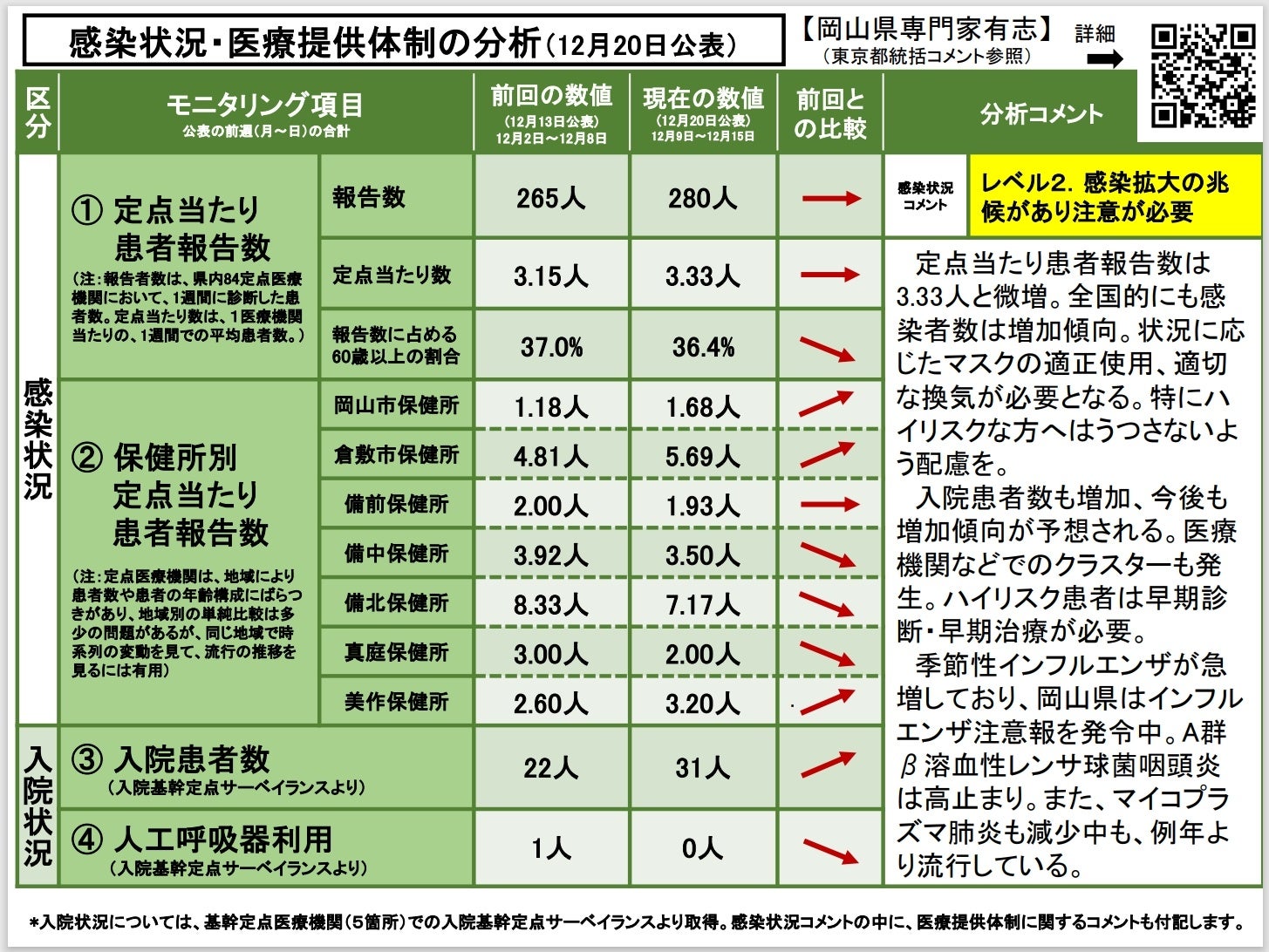 【岡山大学】岡山県内の感染状況・医療提供体制の分析について(2024年12月20日現在)