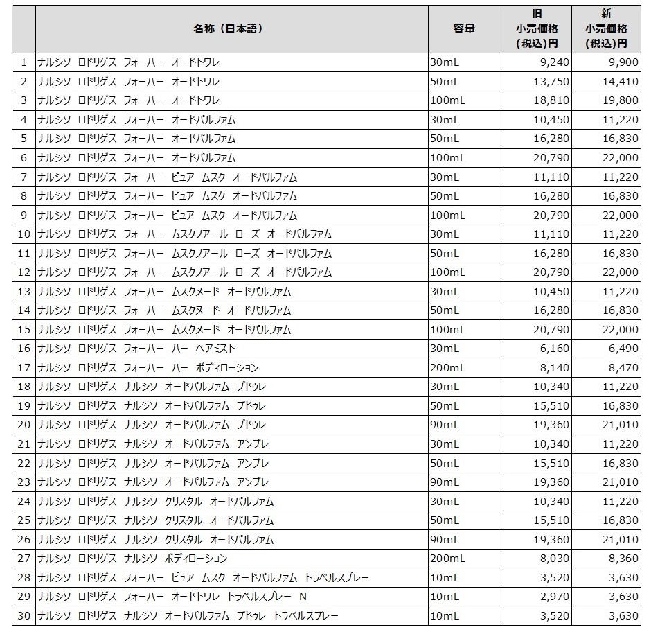 〈ナルシソ ロドリゲス パルファム〉価格改定に関するお知らせ