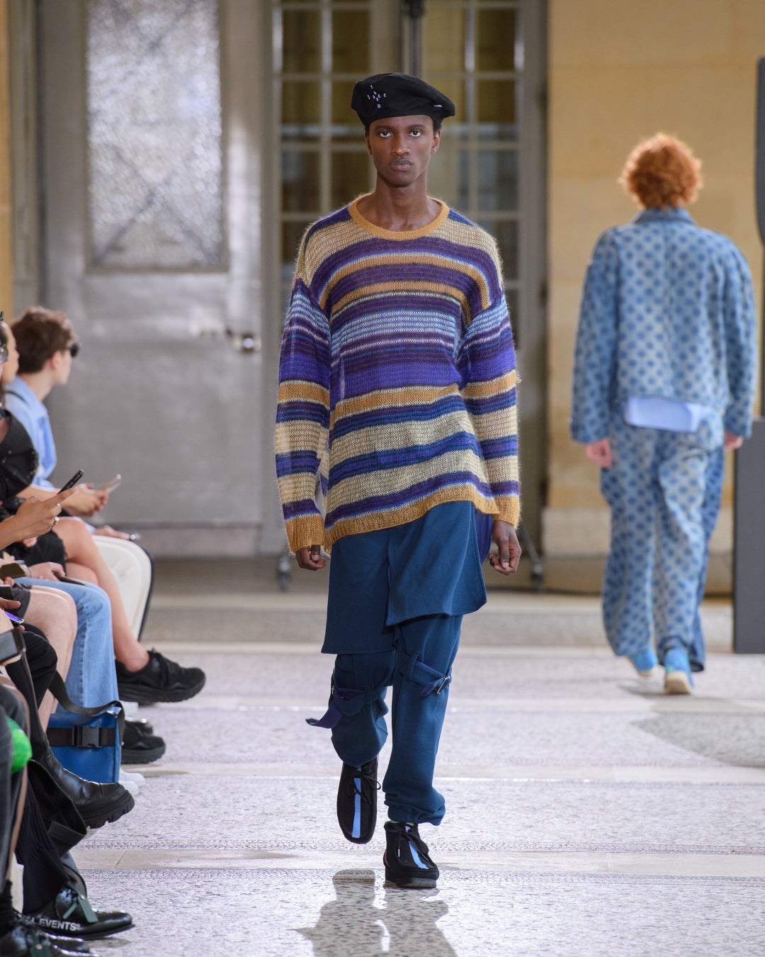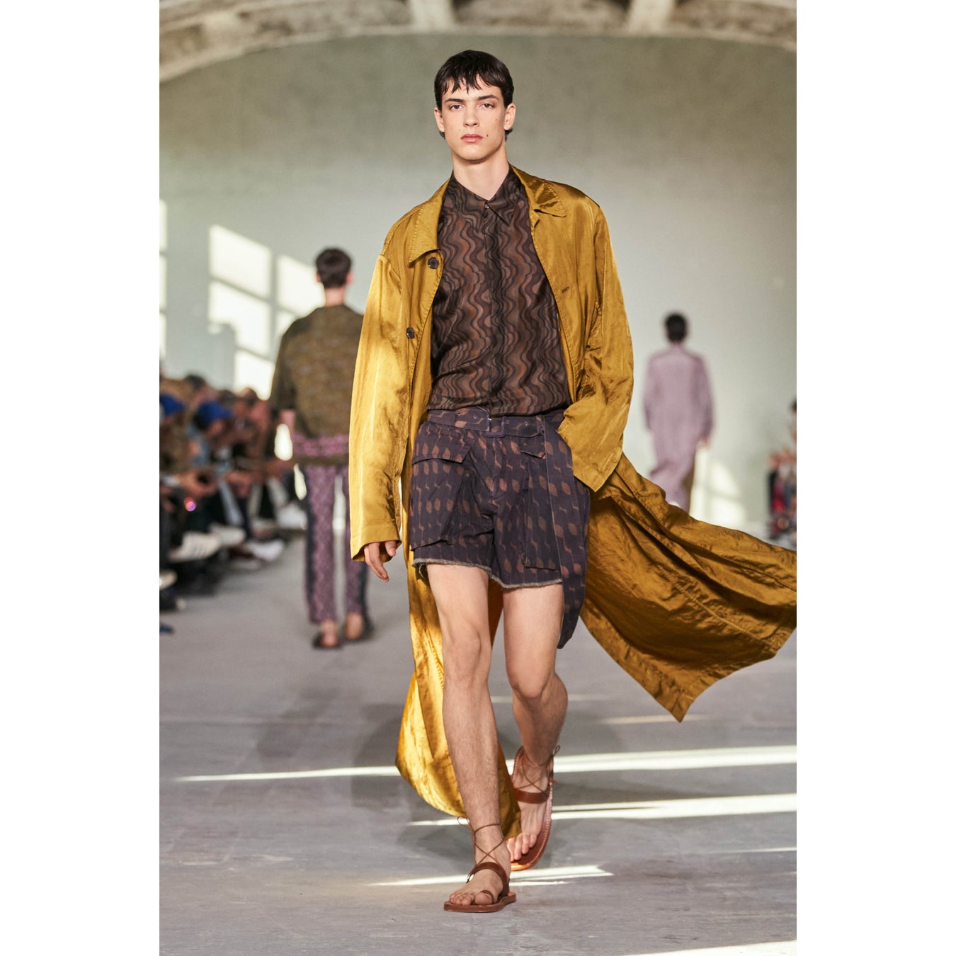 表情豊かな生地使いが印象的。“ジェンダーレス”、“エイジレス”を掲げたファッションの新たな可能性を、ヨウジヤマモト社のフィルターを通して表現する<Ground Y(グラウンド ワイ)>。2024年のS/Sコレクションはワークウエアやミリタリーのディテール要素を取り入れたプロダクトを展開します。春夏らしい柔らかなビエラやシフォンにカモフラージュ柄をプリントし、モッズコートやカーゴパンツ、サークルパンツ、ギャザードレスに投影。シーズンのスタートは定番のギャバジンをはじめ、こだわりの生地を使い特有のドレープ感を生み出したスタイリングを提案します。