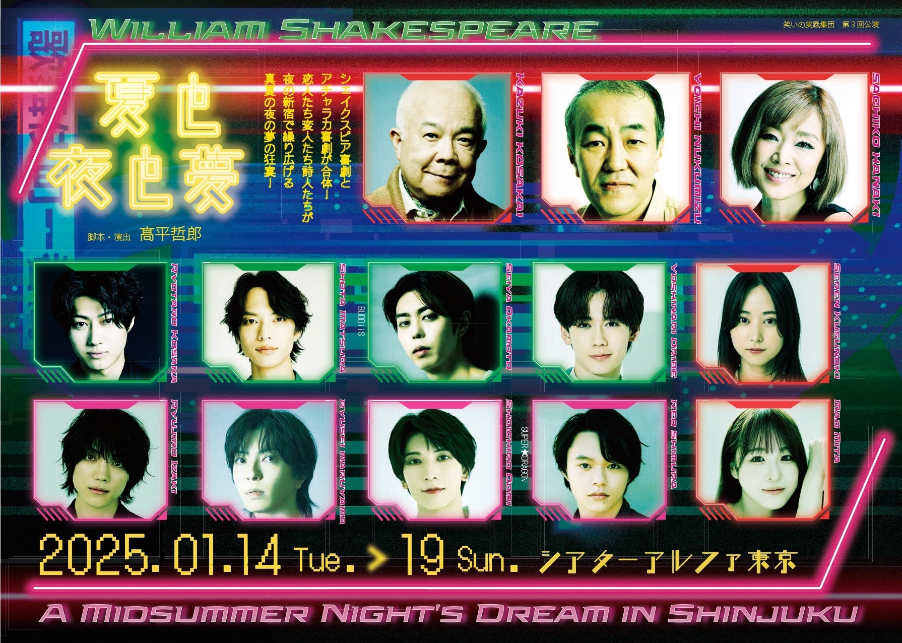 ウィリアム・シェークスピアの『夏の夜の夢』を下敷きに、2001年に髙平哲郎が書いた新宿を舞台とした『夏と夜と夢』。今回はキャストも一新、リーディングアクトとして上演します。