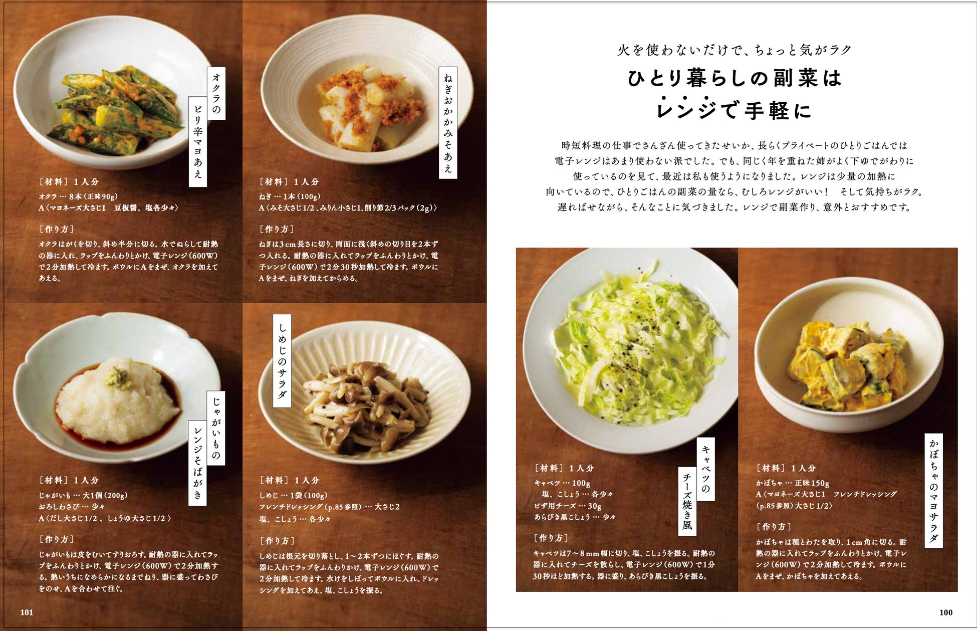 使う調味料はスーパーで買える身近なもので、ひとつのレシピで使う野菜は1種類だけ。見た目は地味ですが、野菜の魅力がダイレクトに伝わる味わいの料理ばかりです。本書ではレンコン、ゴボウ、なす、にんじんなどの定番野菜から、ズッキーニ、カリフラワーなど使いこなすのが難しいイメージのある野菜まで、25種類以上の野菜のレシピを紹介しています。
