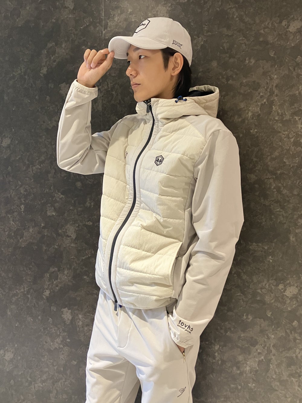 天然ダウンのような高い保温性を誇る「粒中綿」。真冬のプレーに対応できる暖かさだけでなく、ご自宅でも手洗いができるイージーケアを採用しています。