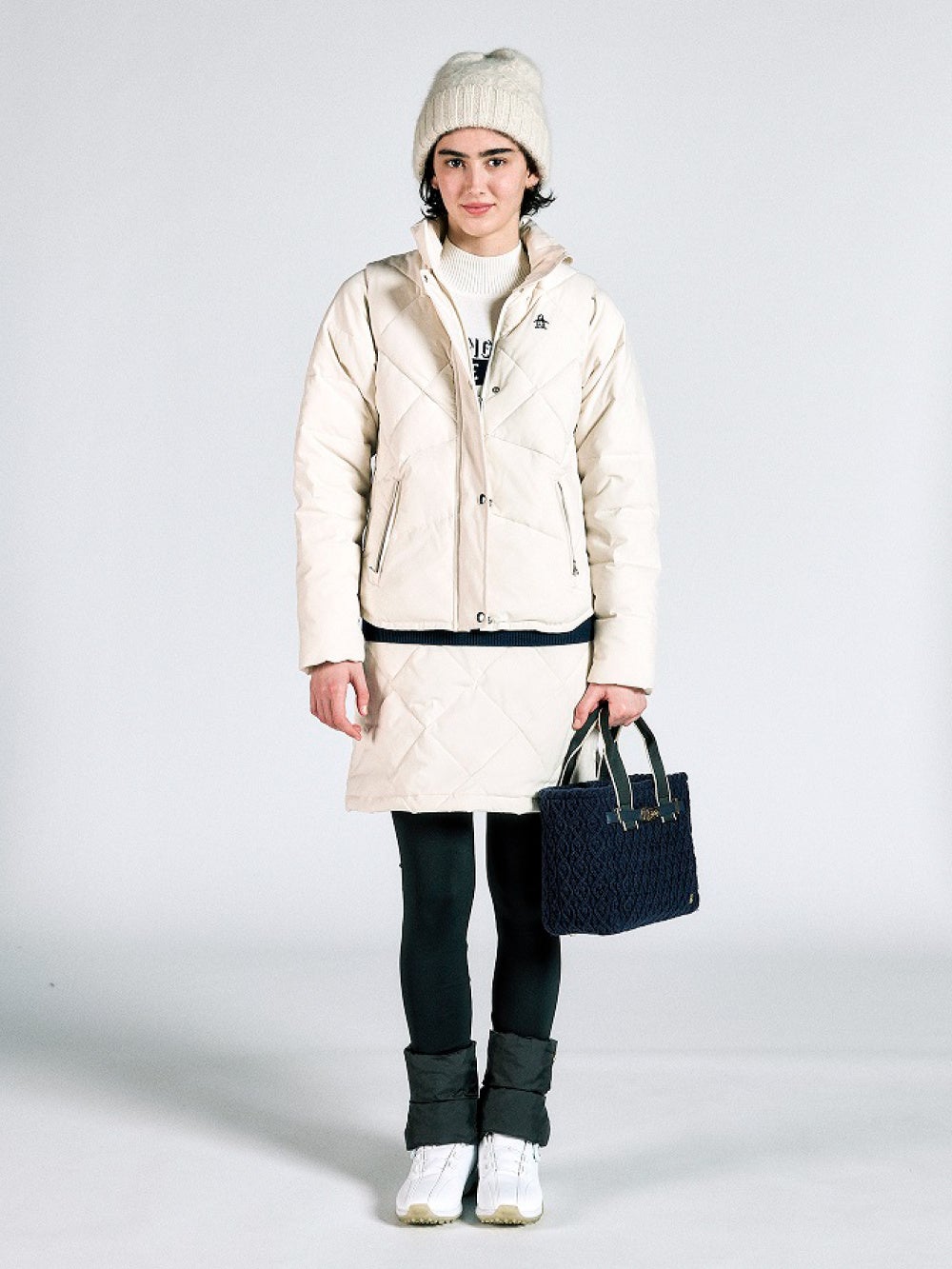 防風裏地付きニットブルゾンは、風を通さないため保温もしつつ着膨れも回避。イエローやピンクといった温かみのあるカラーに〈M・U スポーツ〉らしいキャラクターとロゴ柄で暗くなりがちな冬コーデを明るく演出!