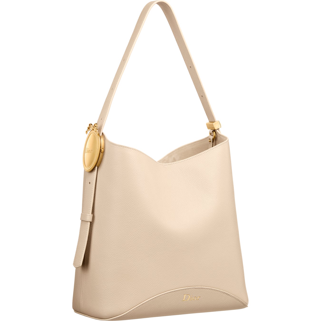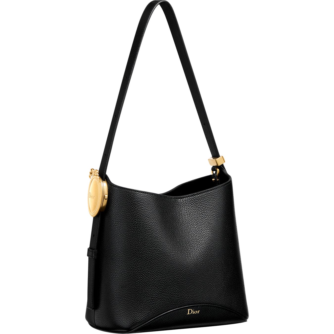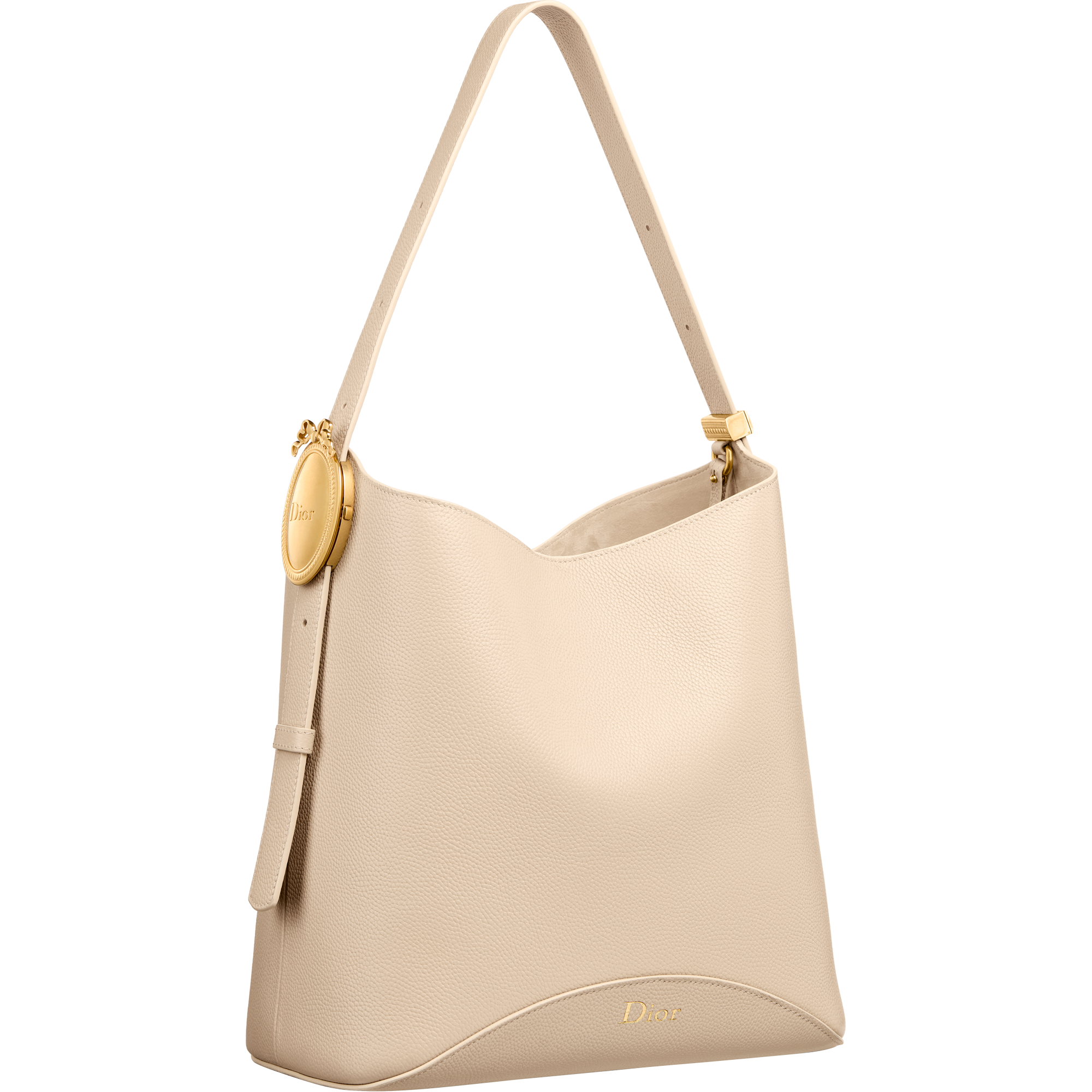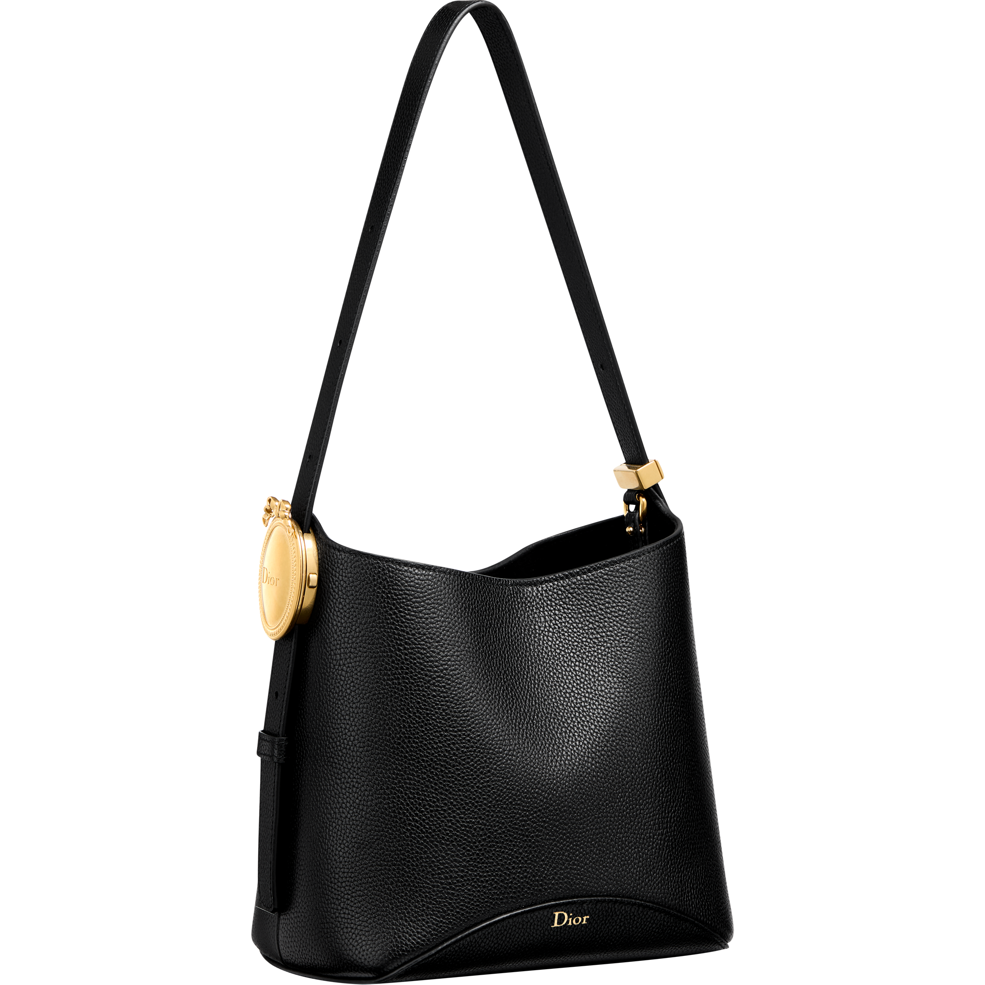 また、「メダリオン」はモダンなバケットバッグの構築的要素としても採用されています。ハンドルに組み込まれた「メダリオン」により、ストラップの長さを簡単に調節可能です。「ディオール オブリーク」ジャカードやグレインドレザーを採用した、スモールとミディアムサイズで登場するこの洗練されたモデルには、取り外し可能なインナーポーチが付属します。