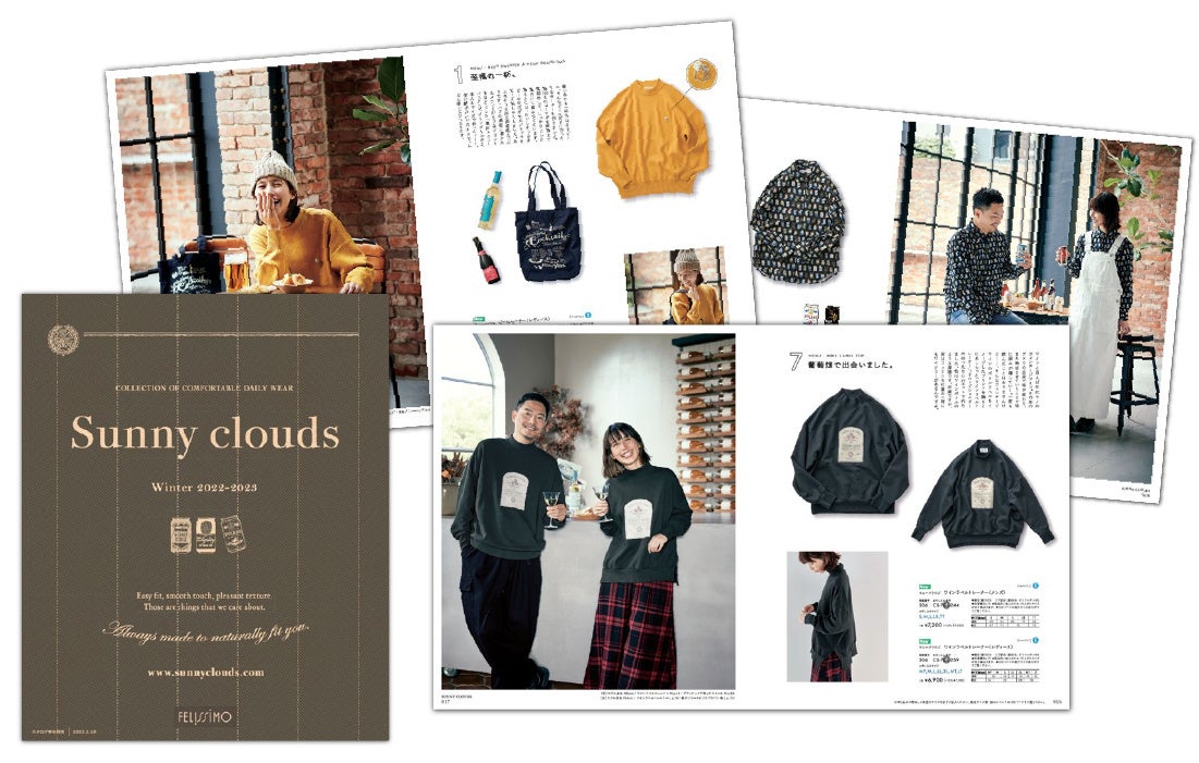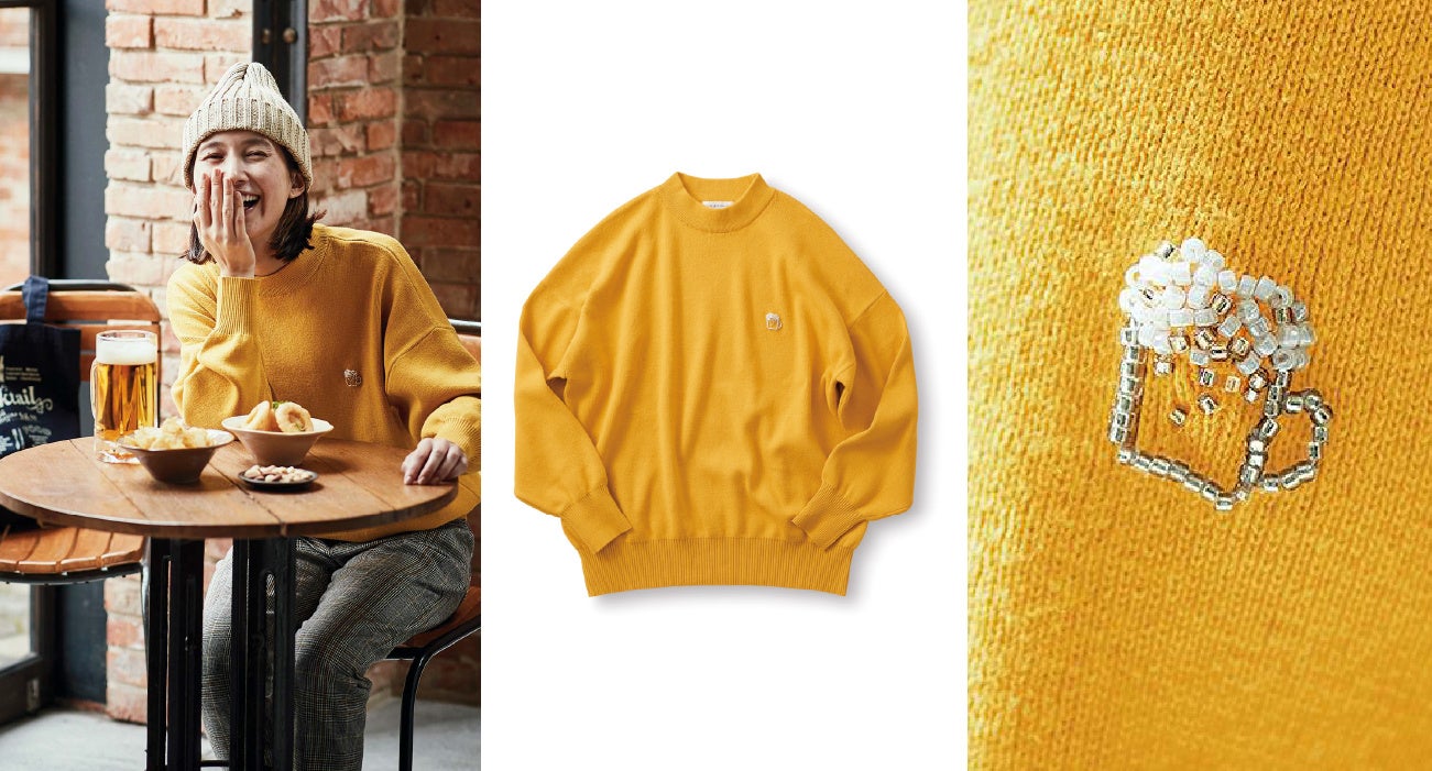 ビール色のセーター、パブのメニューのようなトートバッグなどお酒をテーマにした冬のふだん着がフェリシモ「Sunny clouds[サニークラウズ]」から新登場