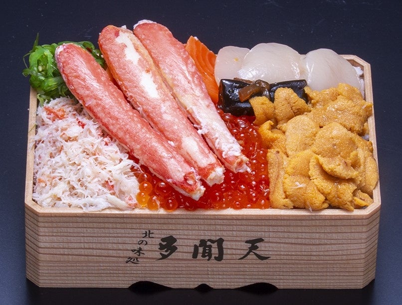 タラバガニ、ズワイガニ、花咲ガニ、毛ガニをこれでもかと乗せた贅沢弁当。