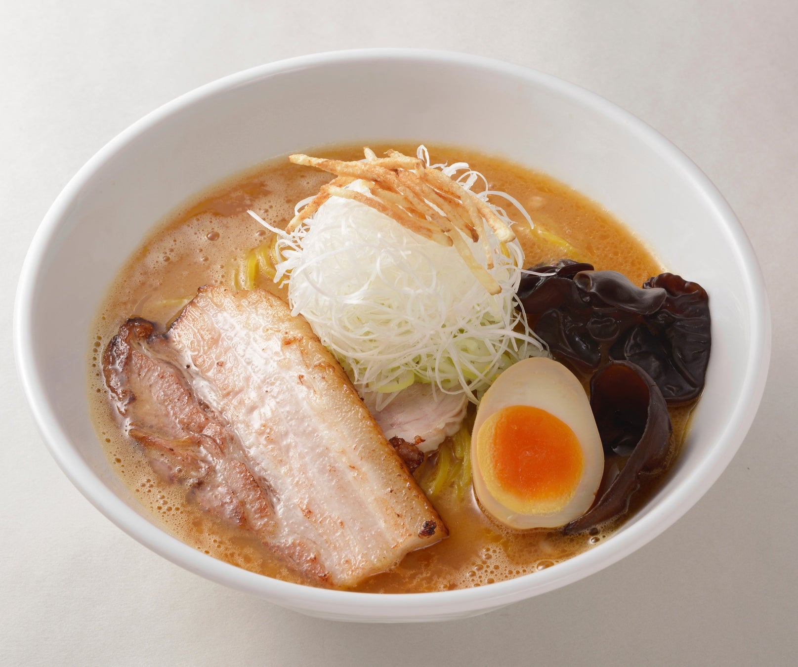 3種の味噌をブレンド。道産豚骨、道産鶏を長時間煮込み、煮干し鰹節で風味づけした白湯スープと合わせ、味噌専用香味で仕上げました。