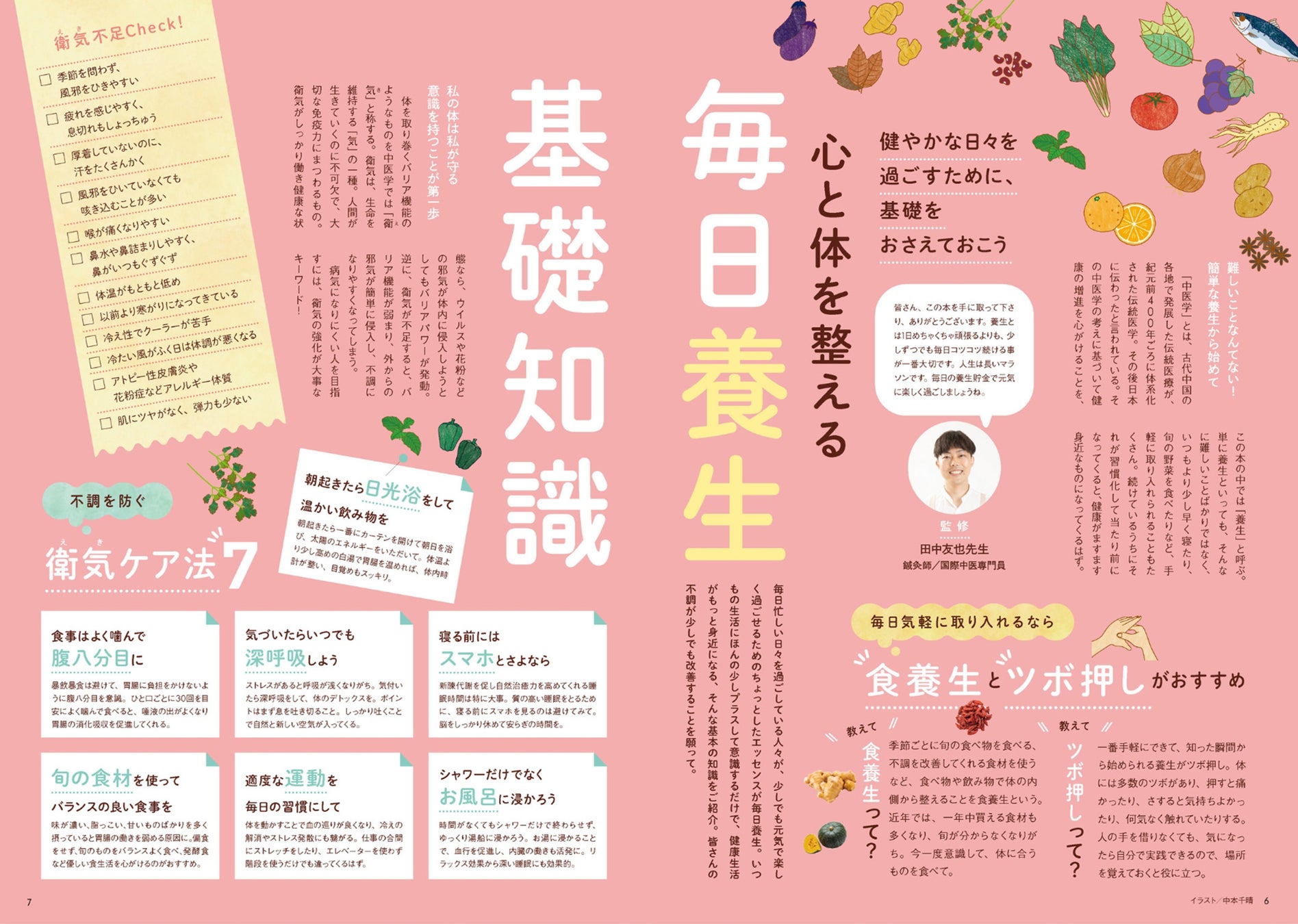 日光浴や深呼吸など、日常で意識するだけで不調を防ぐ衛気ケアも紹介。