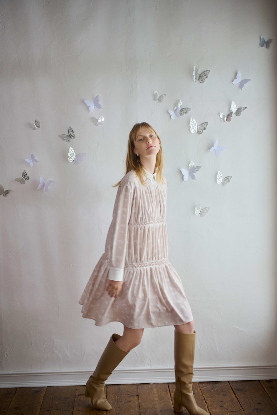 ブランドシグネチャーをイメージしたバタフライモチーフをあしらい、多彩な素材感のアイテムに仕上げました。