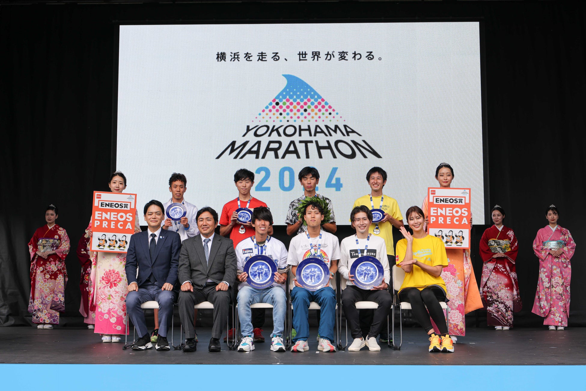 横浜ランドマークタワー前でのスタート式では、横浜マラソン組織委員会・会長の山口宏さんが「『横浜マラソン』に参加いただきありがとうございます。絶好のマラソン日和となりました。どうか楽しんでいただければと思います。『横浜マラソン2024』開会を宣言いたします!」と声高らかに宣言。