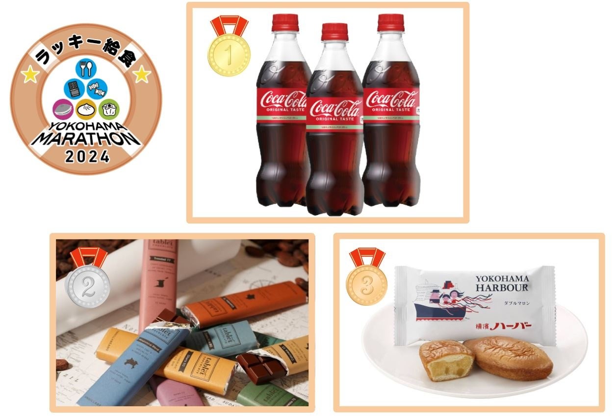 「ラッキー給食」は、ランナーの方々に楽しみながらゴールを目指してもらうため、地元横浜、神奈川の銘菓やおすすめ食品を用意。どこの給水所で何が食べられるかは当日のお楽しみになっており、“食べられたらラッキー!”と思えるところから「ラッキー給食」と呼ばれています。今年は「ラッキー給食総選挙」が行われ、第1位が「コカ·コーラ」、第2位が「タブレットショコラ」、第3位が「横濱ハーバー『ダブルマロン』」という結果になりました。