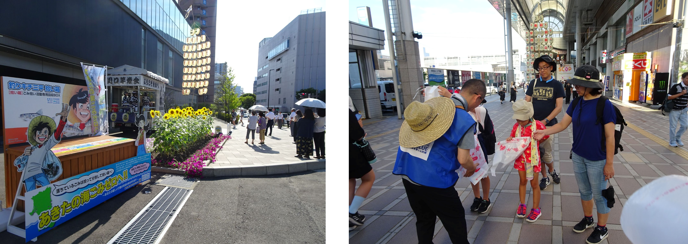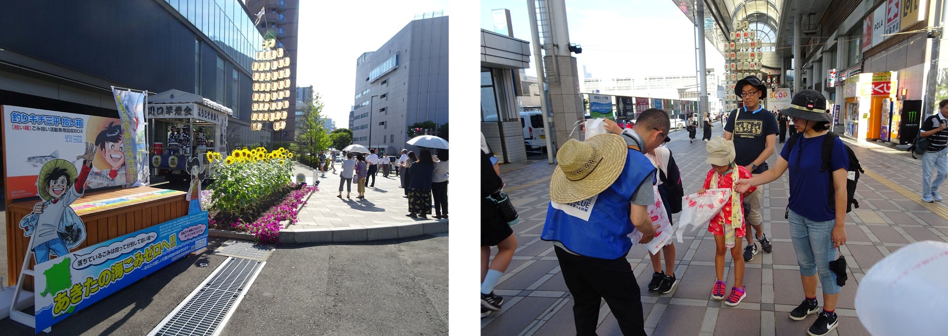 秋田駅・竿燈まつり会場周辺にて多くの方々に海ごみゼロ活動周知啓発