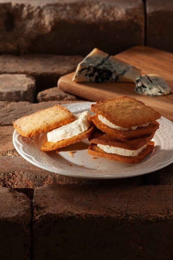 クッキー生地に2種の熟成チーズを練りこんで焼き上げ、濃厚なクリームチーズをサンドしました。クリームに練りこんだライスパフがアクセントのある食感を演出します。
