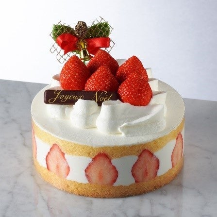 口どけなめらかなクリームとスポンジに苺をサンドした、クリスマス限定デザインのデコレーションケーキ。