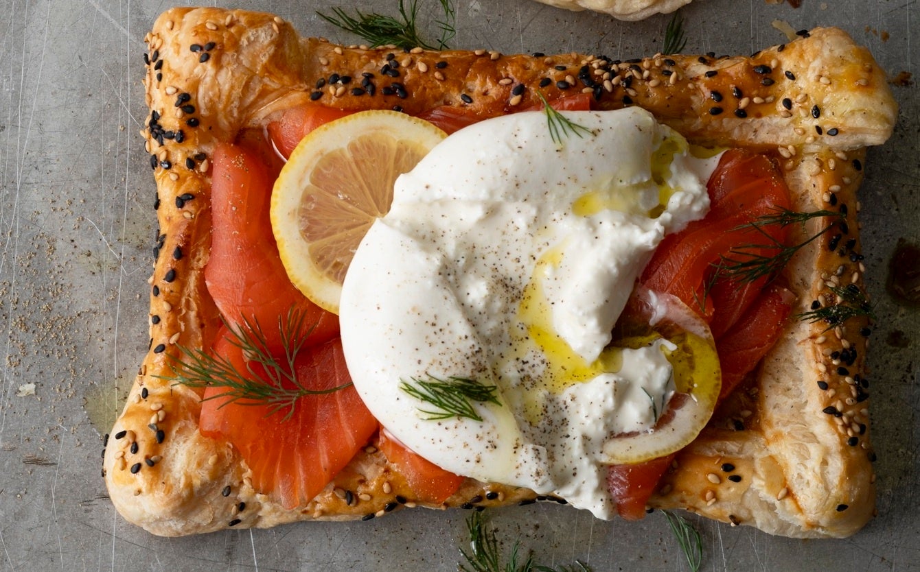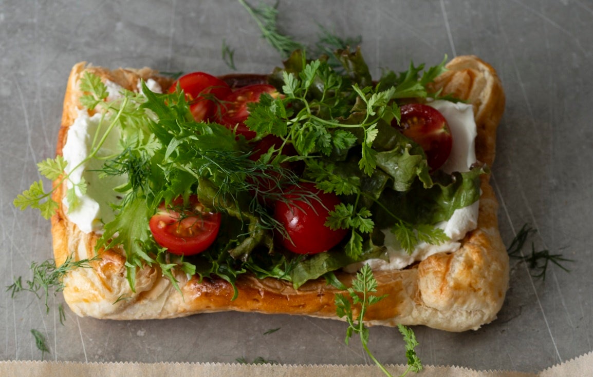 焼いた生地に野菜やサーモン、チーズなど好きな具材をのせるだけ。