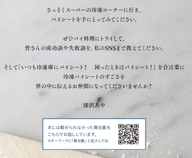 さらに書籍には載せきれなかった調理のコツや舞台裏を、ページ掲載のQRコードで案内もしています。