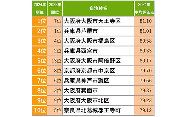 SUUMO住民実感調査 SUUMO住み続けたい街ランキング2024 関西版