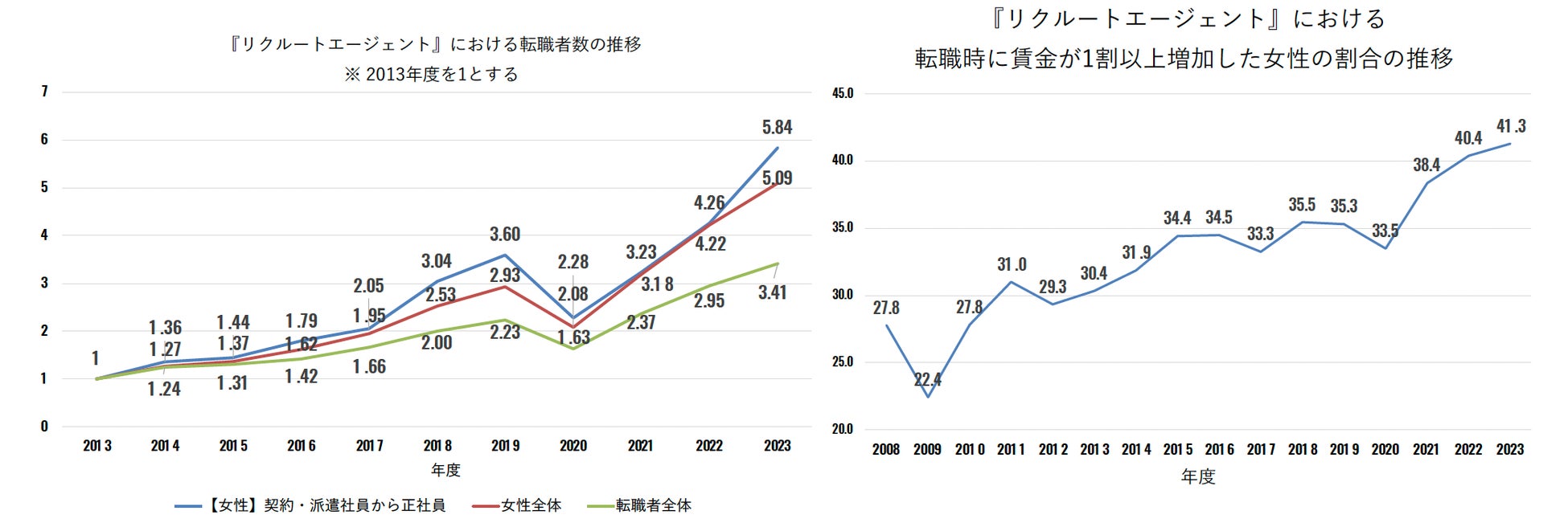 女性の転職は10年で約5倍に増加し、賃金も上昇 ブランクがあっても転職実現。L字カーブ解消の期待