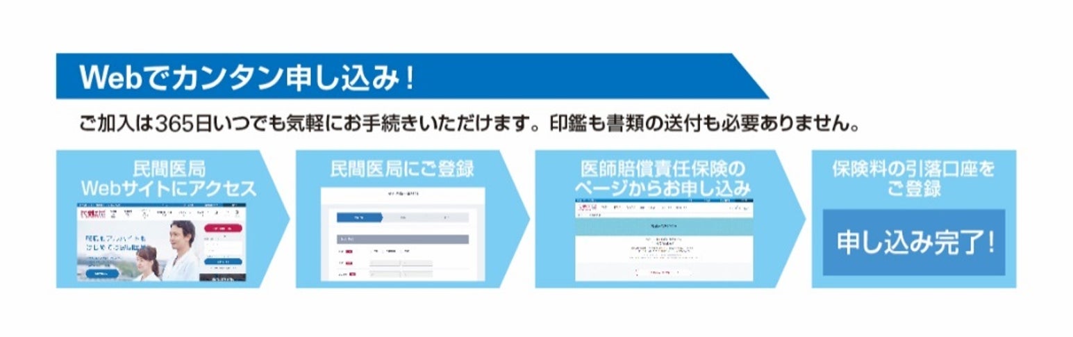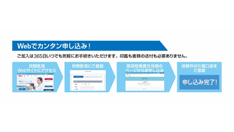 民間医局が展開する医賠責保険は、2001年11月のサービス開始以来、医師免許取得後3年目以降の若手医師を中心に約26,000人の会員にご利用いただいております。MP社では、2019年頃から、より使いやすいサービスをめざして、領収書のWeb化や口座振替Web登録システムの導入などを順次進めてまいりました。このたびの新規加入申し込み手続きのオンライン化により、民間医局のWebサイト(https://www.doctor-agent.com/)から、24時間365日いつでも手軽に申し込みが可能となり、お忙しい医師の方にとってより便利で身近にご利用いただけるようになりました。