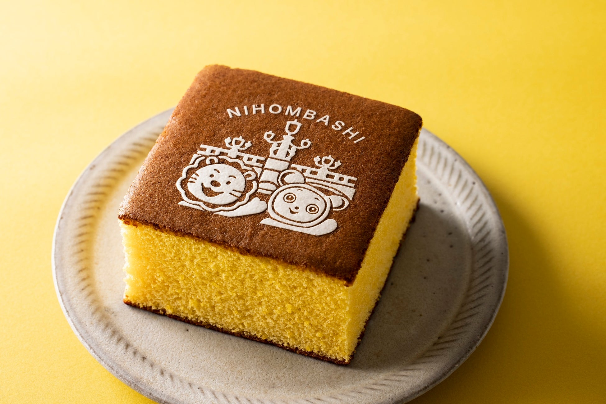 かわいらしいライオンと、文明堂のキャラクターでおなじみのこぐまが仲良く書かれたカステラです。