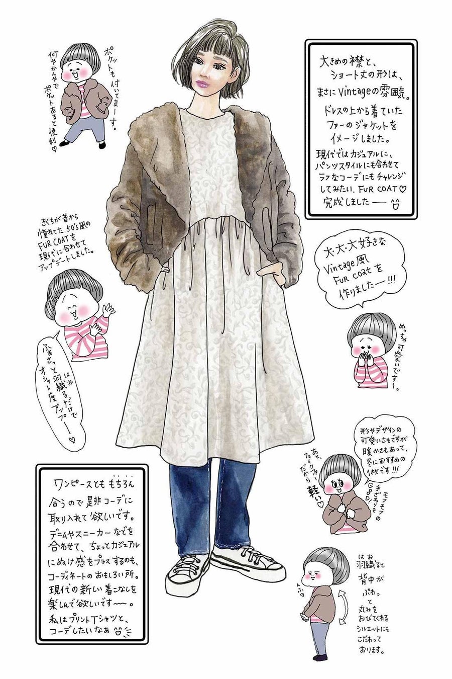 イラストレーターきくちあつこコラボ第21作「大きめ襟で50’s風のファージャケット」など冬の新作がフェリシモIEDIT[イディット]から新登場
