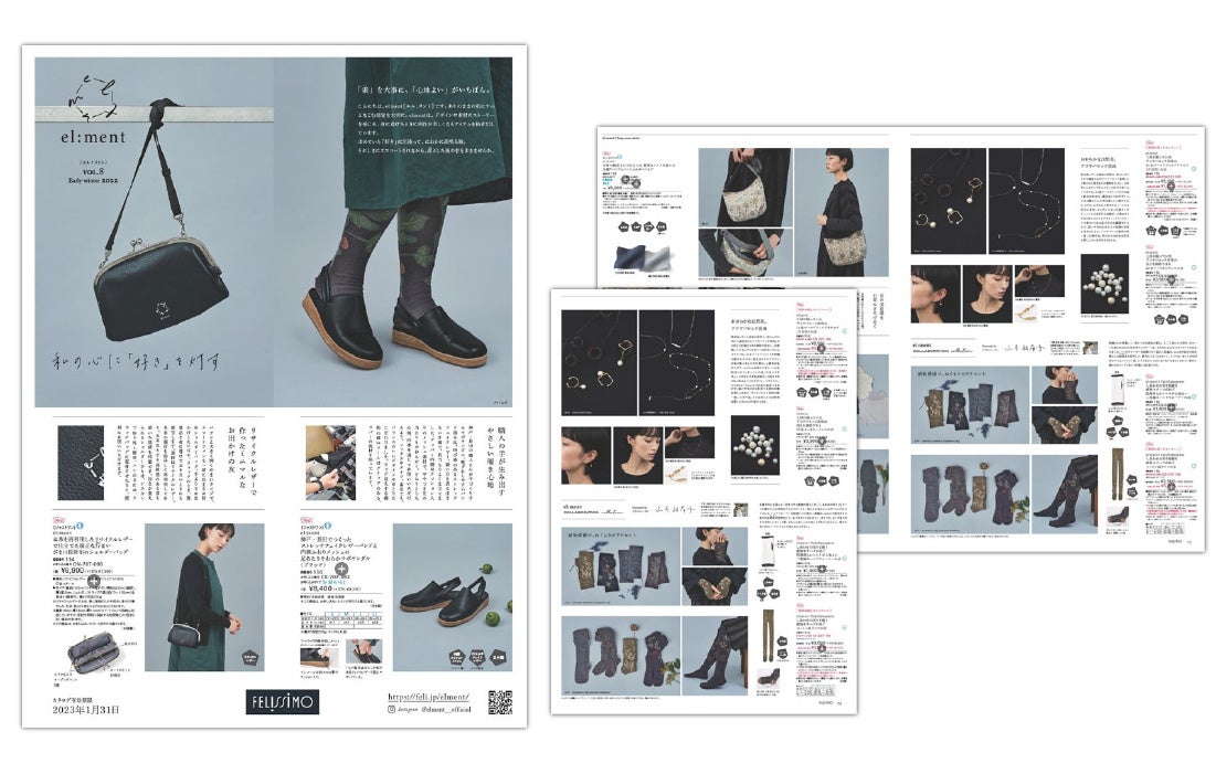 フェリシモが展開する、ファッション・雑貨ブランド「el:ment[エル:メント]」は新作アイテムを発表、10月18日よりウェブ販売を行っています。新作はリサイクルレザーでつくった「がま口のショルダーバッグ」、神戸・長田の職人が手づくりした「ストレッチフェイクレザーのサボサンダル」、イラストレーター山本 祐布子さんが描く植物モチーフの「ハンドウォーマーやタイツ」です。さりげなく生活をやさしさで包んでくれる冬の新作は、ウェブサイトやデジタルカタログでチェックできます。