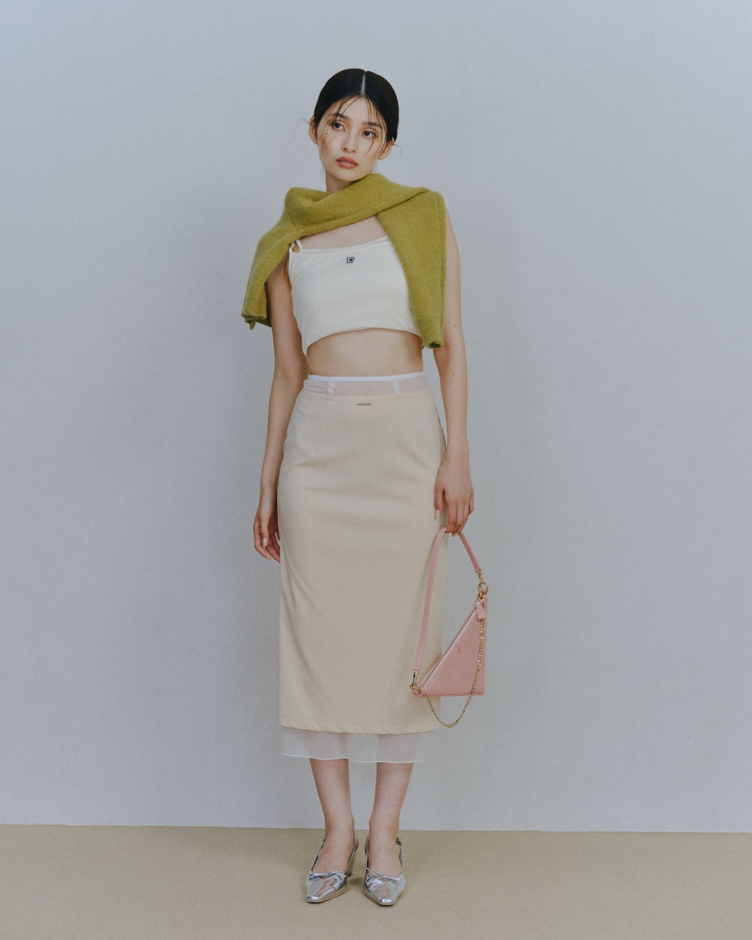 レイヤードスタイルが楽しめる2wayトップスとメッシュ素材がドッキングされたスカートは