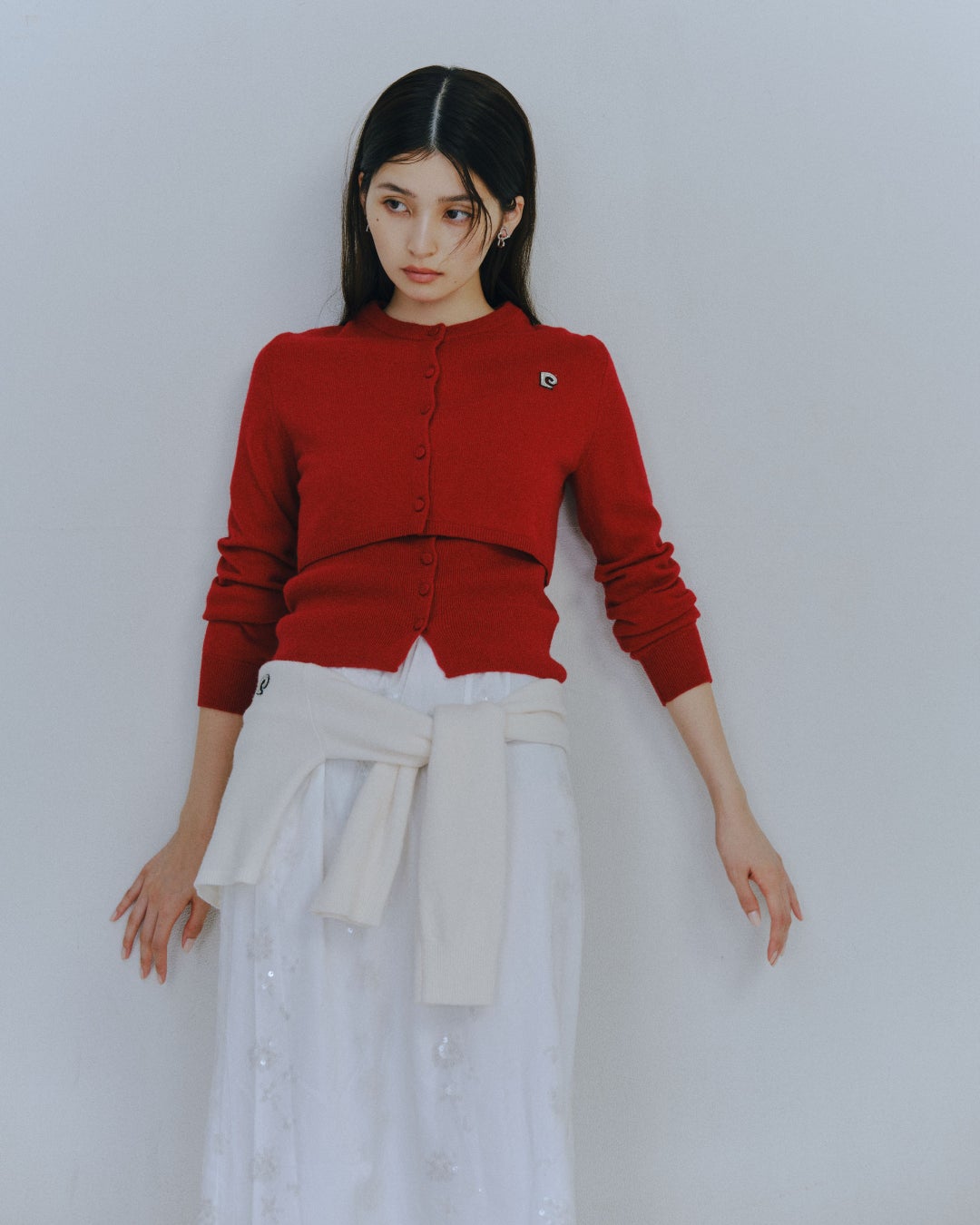 インナーに同素材のニットキャミがセットになったアンサンブル。