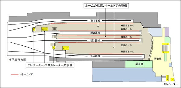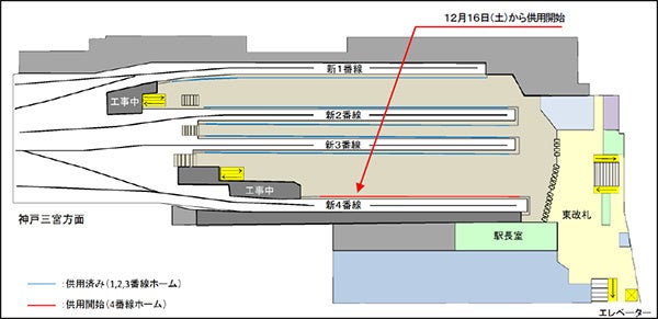 阪神電気鉄道株式会社(本社:大阪市福島区、社長:久須勇介)では、2015年3月から実施している大阪梅田駅改良工事において、改良工事の進捗に伴い、12月16日(土)から、ホームからの転落事故等の防止策として整備している4番線ホームドアの供用を開始します。
