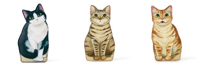 デザインは、かわいい顔でおねだりする〈ハチワレ〉、じっと無言で見つめ続ける〈キジトラ〉、おしゃべりさんな〈茶トラ〉の3種類です。