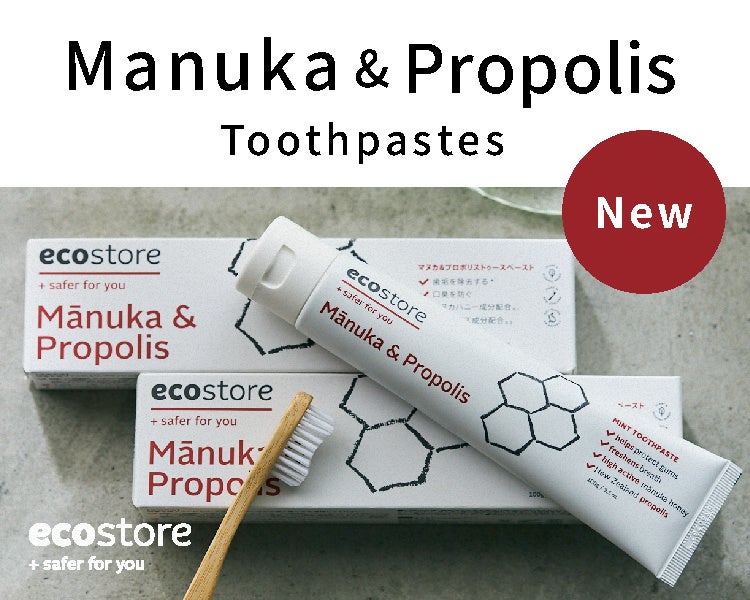 【ecostore(エコストア)】口臭を防ぐと人気のプロポリス*¹歯磨き粉に、ニュージーランド原産マヌカハニー*²が加わりパワーアップして新登場