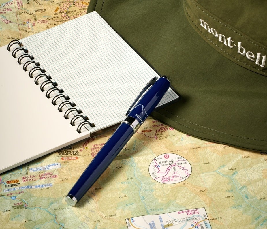 「モンベル」は、世界でも指折りの難所で、死の壁とも呼ばれるスイスの「アイガー北壁」を最年少で登攀(とうはん)した辰野勇(当時21歳、現77歳)が、1975年に立ち上げたアウトドアブランド。今では世界中の自然派から支持されています。付録万年筆には、そのブランドロゴと、アイガー、さらにスイスのマッターホルンの山容があしらわれています。