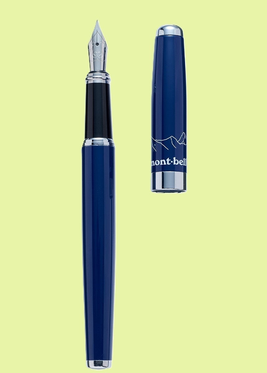 書き心地のよい金属軸の本格派で、「ヨーロッパタイプ」のインクカートリッジも1本付属。光沢のあるボディは長さ約135㎜で、色はシックな濃紺を採用。他にはないモンベルコラボ万年筆をお気に入りのステーショナリーのひとつに加えてみてはいかが?