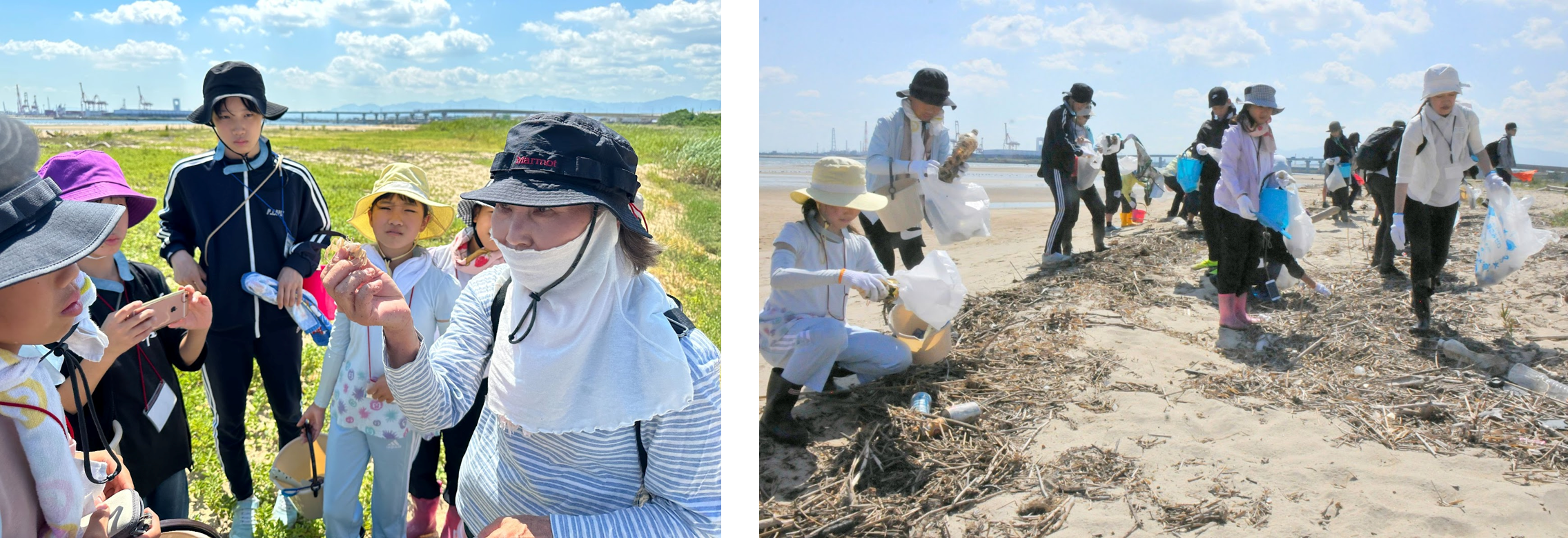 体験の後は、スタッフも一緒に全員で砂浜のごみ拾いをしました。