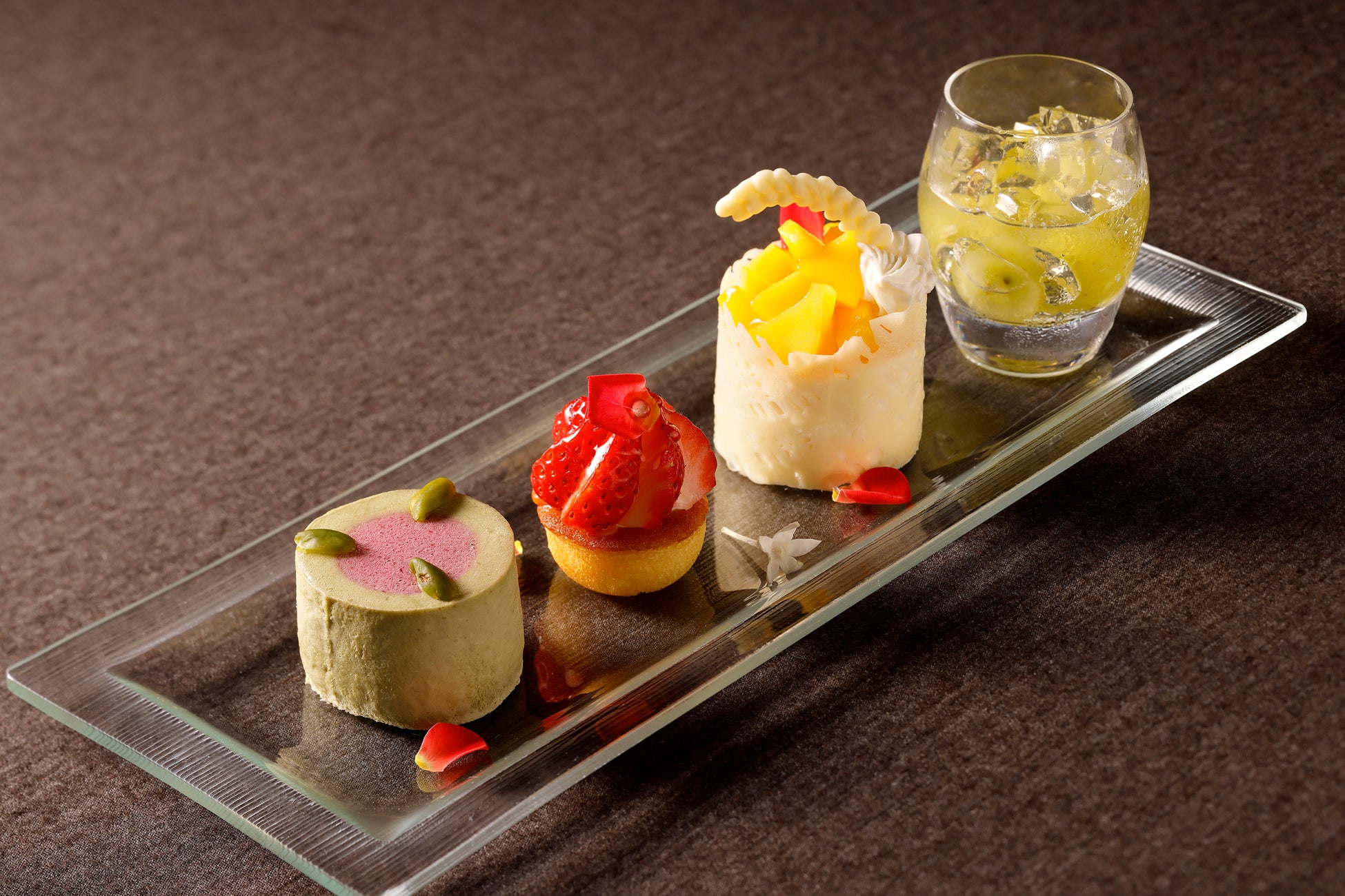 はじまりのデザートにふさわしく華やかで軽やかな口当たりのスイーツ4種の盛り合わせです。