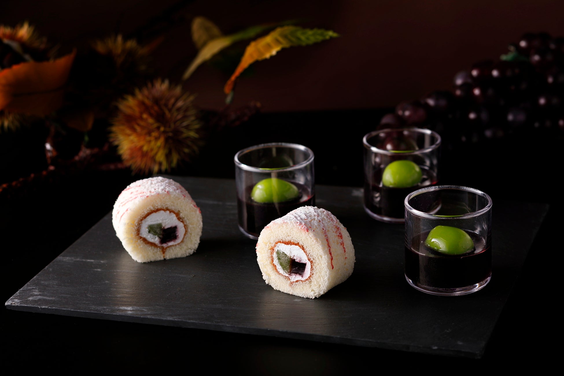 “秋フルーツの王道”ともいえる「ぶどう」を使用したスイーツは、ふんわりとしたロール生地の中にぶどうを忍び込ませた『グレープロール』やぶどうの果汁が凝縮された『グレープゼリー』、『グレープシャーベット』なども仲間入り。秋の味覚を贅沢に味わえる、夢のひとときをお過ごしいただけます。