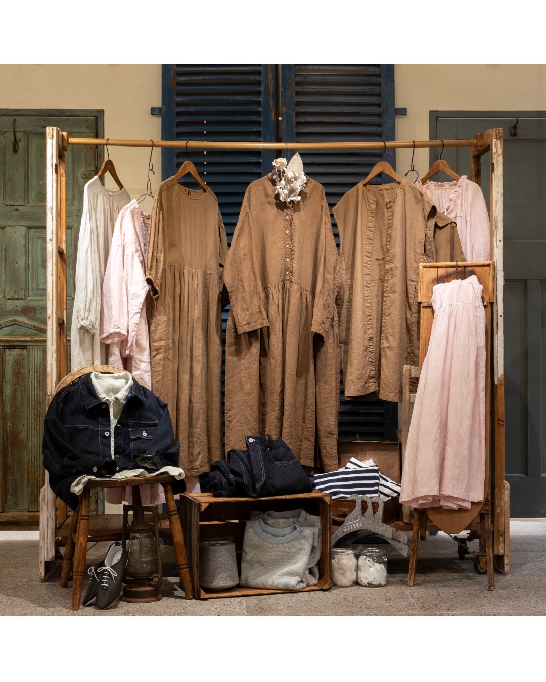 “SLOW MADE IN JAPAN”をコンセプトに、サステナブルプロダクトを中心にした POP UPを開催。ブランドが注力する、服を作る過程でどうしても避けられない裁断くずを活用したプロジェクト 「UpcycleLino™」シリーズをピックアップ。今回は、アーカイブサンプルにもフォーカスし、倉庫に眠っていたひとつひとつのサンプルの良いところを見つめ直し、サクラ・レモングラス・コーヒーの3色の天然染めを施した、唯一無二のナチュラルダイシリーズも登場。春色に染め上がった一点ものを手に入れたい。4F 常設店舗では「UpcycleLino™」シリーズをフルラインアップで展開中。