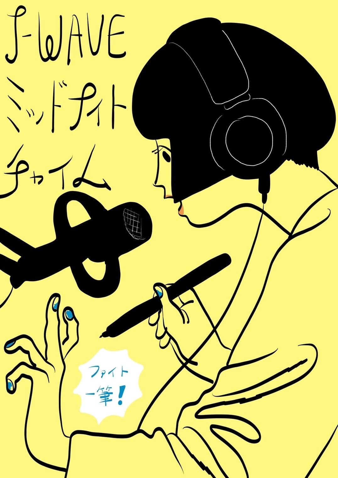 J-WAVEの番組『MIDNIGHT CHIME』でおなじみ、たなかみさきがリスナーのお悩みをイラストで答える「ファイト一筆」。これまで描いてきた作品の中から厳選したイラストたちを展示する。