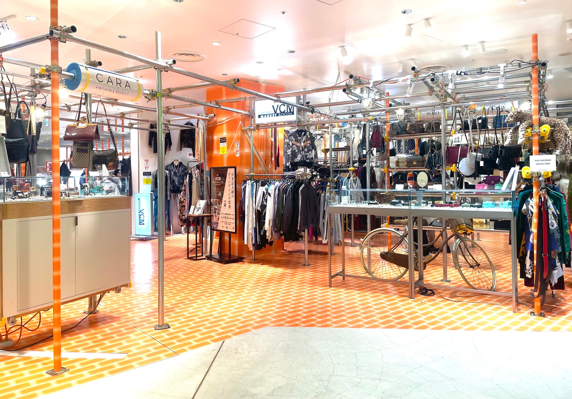 日本最大級のヴィンテージ総合プラットフォーム「VCM(VintageCollection Mall)」が運営する、マーケット型実店舗「VCM MARKET BOOTH」。空間を、場の価値の転換に焦点を当てた取り組みを行っているSKWATが手がけ、ヴィンテージエルメスを中心に取り扱う、予約制ショップの“VCM COLLECTION STORE”も常設されています。今回のリニューアルでは“solo” “Trip”の2店舗を新しく迎え、CHANEL・CELINE・PRADA・Diorなどのハイブランドヴィンテージのエリアを増設。1000点以上のハイブランドヴィンテージが並ぶ圧巻のラインナップに。更にアパレルエリアは、世界中からコレクションしたアート作品のような希少なused & vintage を取り扱う“sison”を迎え、リニューアルオープン。