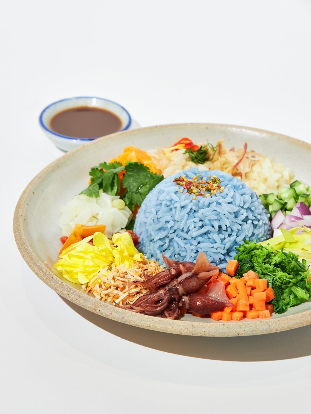 オーストラリアや日本の名店で修行を積み、「salmon&trout」で、シェフを務め、店舗やイベント、メディアのプロデュースなど多岐にわたる活動を行う森枝シェフ。世界中のレストランとイベントをする中で東南アジアやタイ料理に魅了され、スパイシーなだけではない、しみじみおいしい味わいに辿り着いた。会期中は、青果ミコト屋の野菜や旬のホタルイカを使用したカオヤム料理を提供。自家製の発酵調味料とホタルイカを余す事なく使用して作ったソースは、フードロスを減らすサステナブルな取り組みにもこだわった逸品だ。