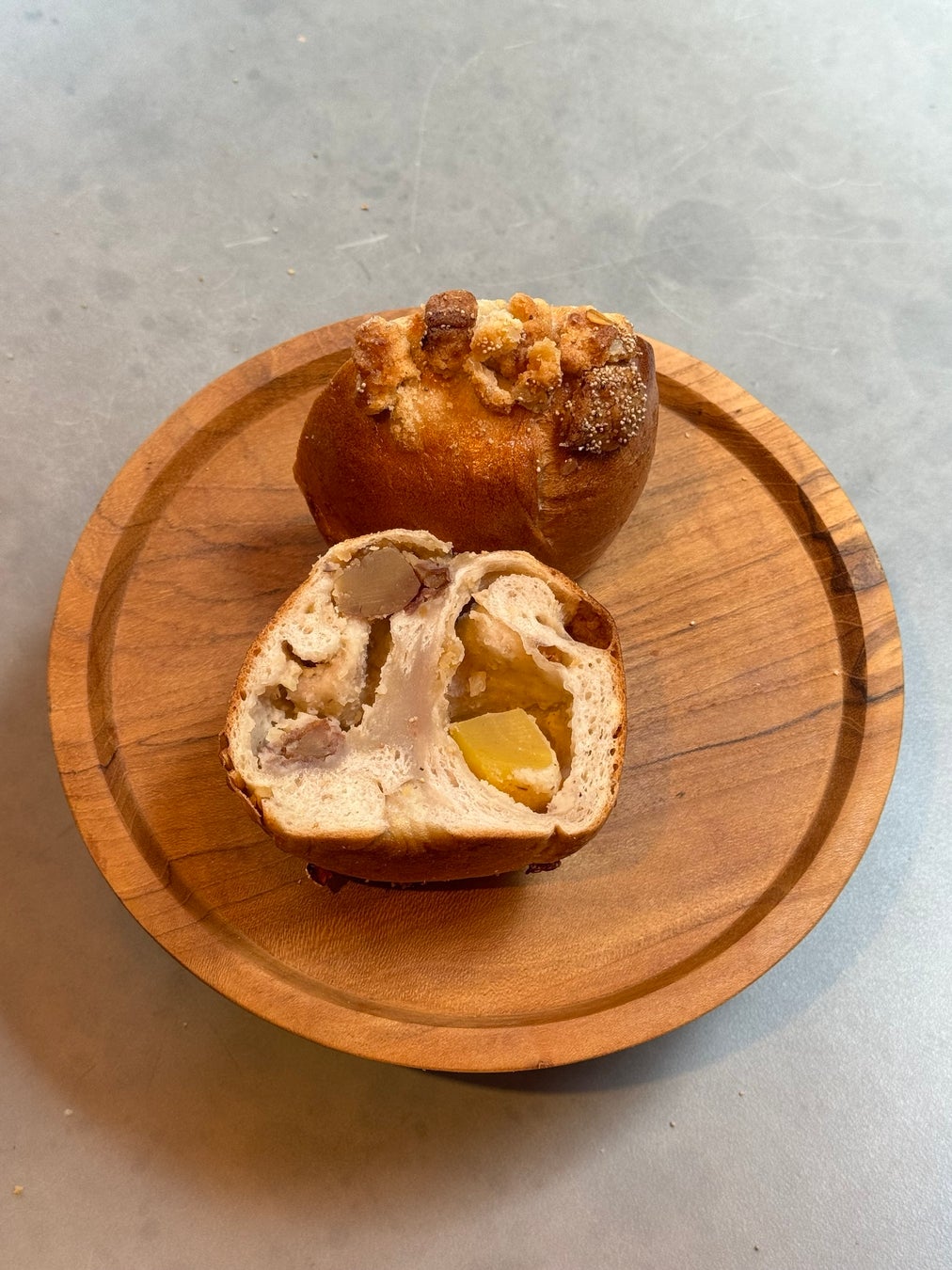 小麦粉や酵母の違いで「ふか・もち・むぎゅ」と3つの食感を使い分ける人気のベーグル専門店<テコナベーグル>が初出店。今回は栗がふんだんに使われたベーグルをご用意。ごろっとした栗とモンブランクリームがたっぷりな一品です。他にも、本イベント先行販売の商品など、毎日40種ほどのベーグルをご用意いたします。