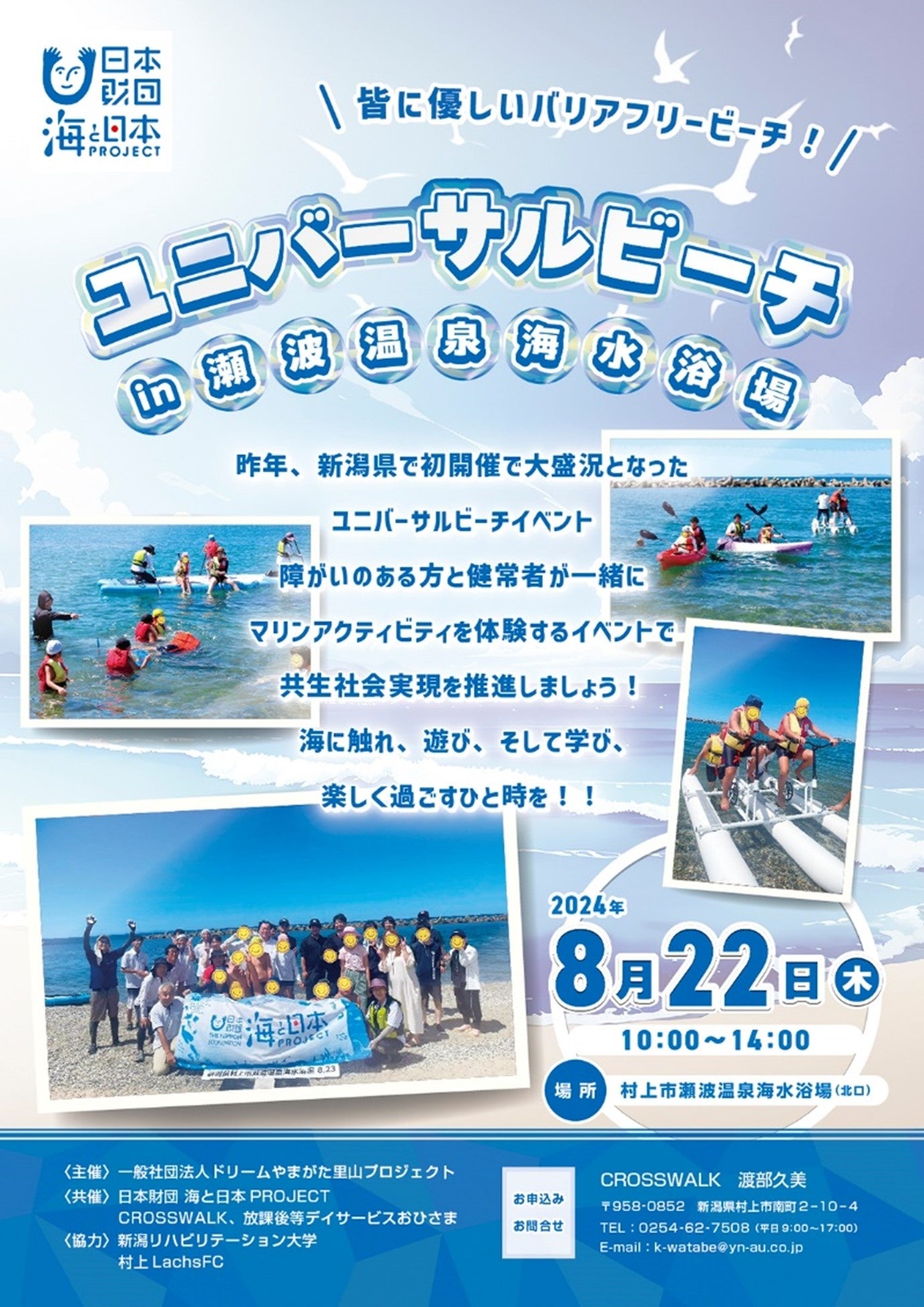 皆に優しいバリアフリービーチ!ユニバーサルビーチin瀬波温泉海水浴場を開催します。