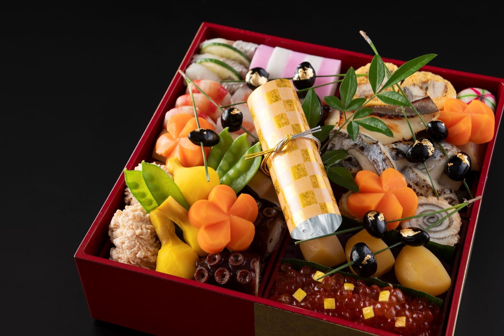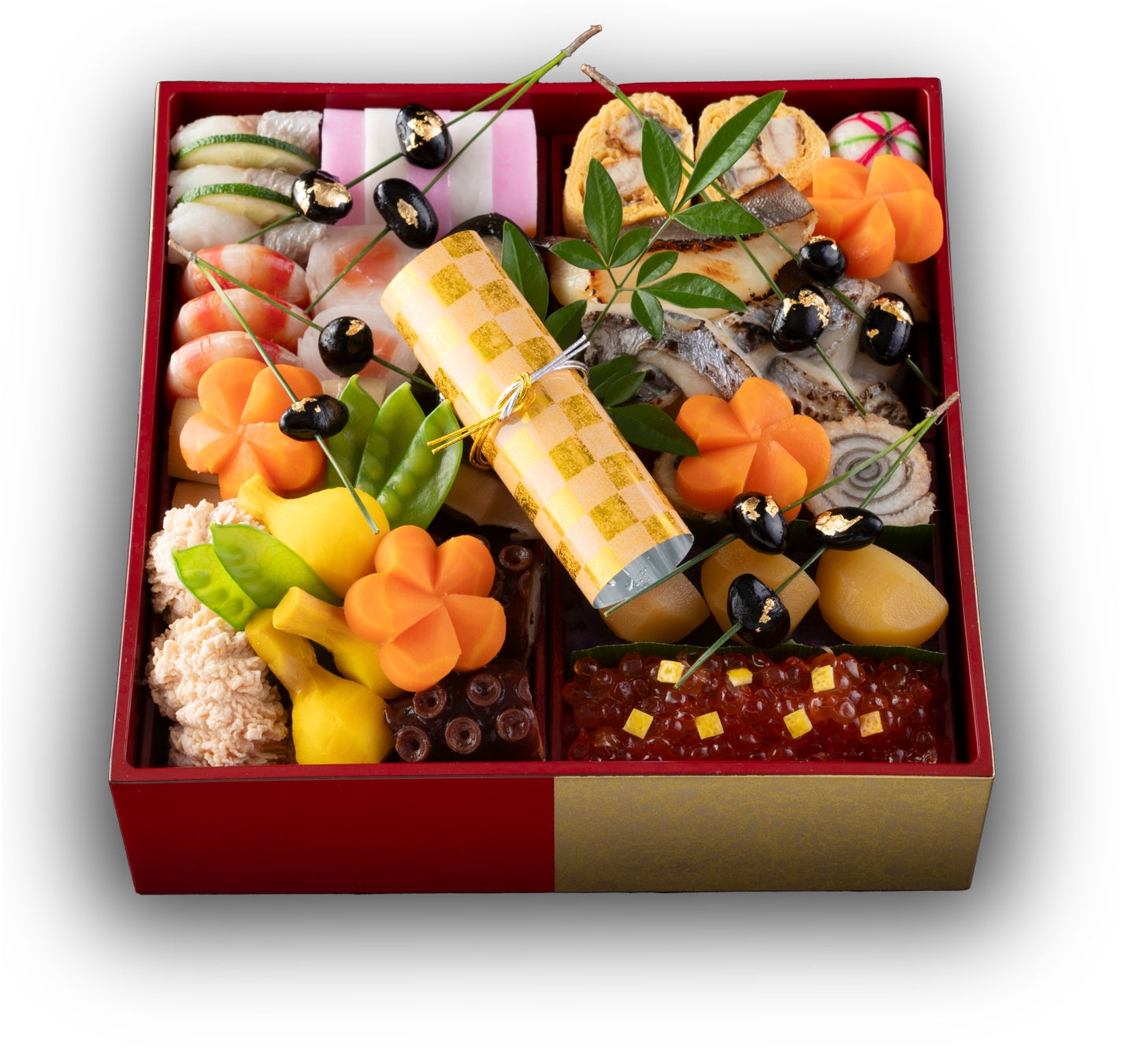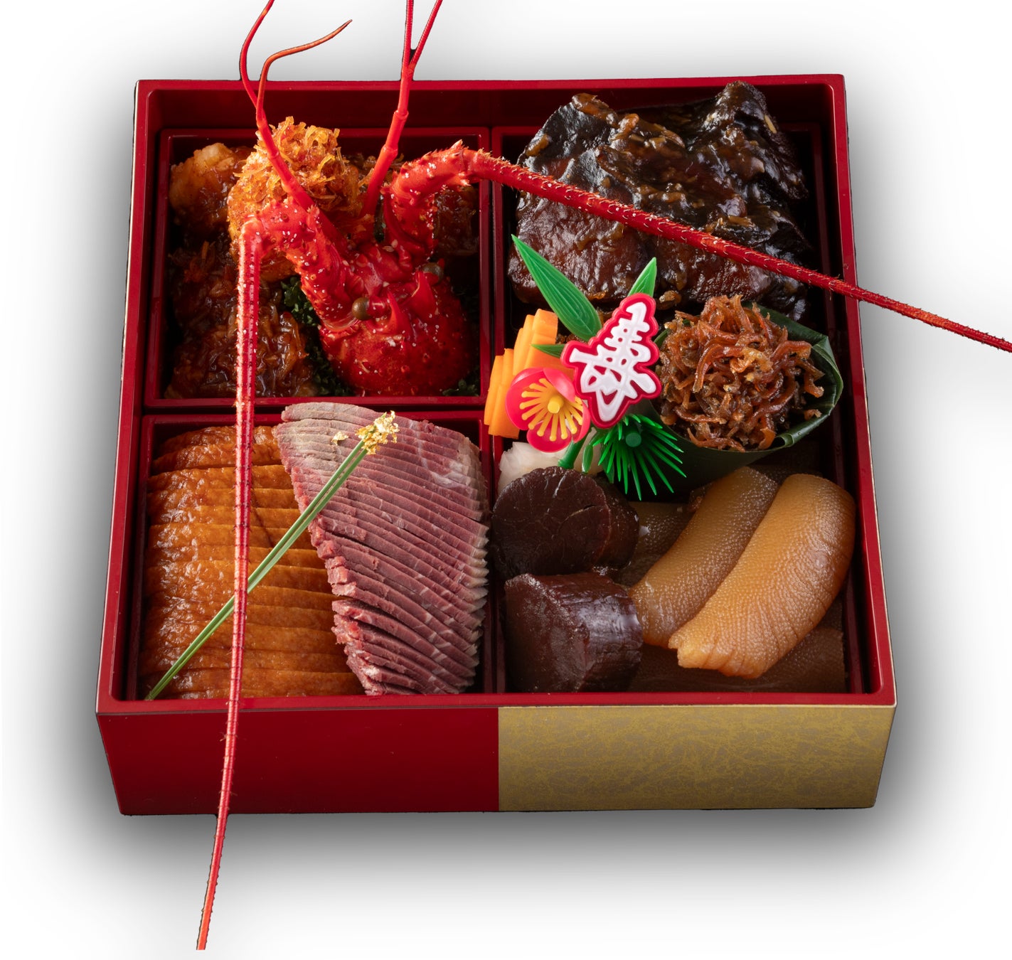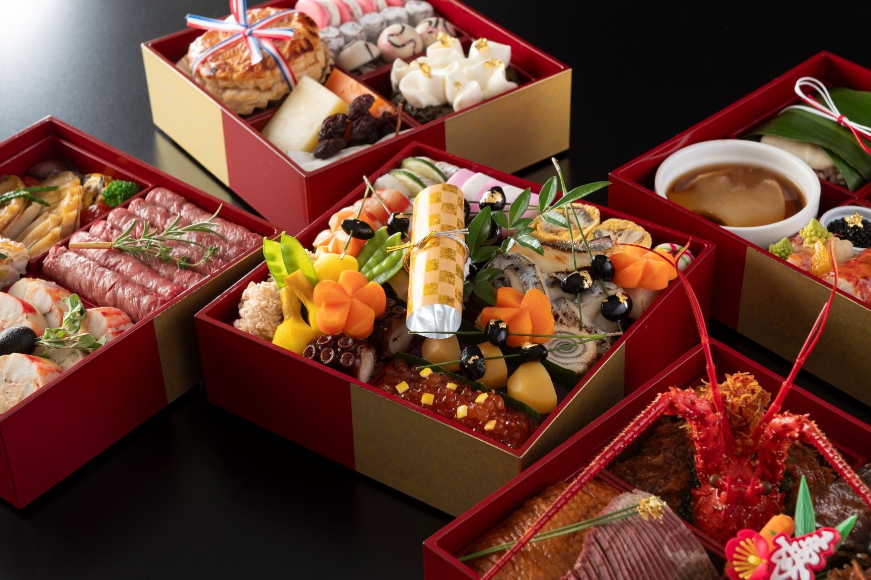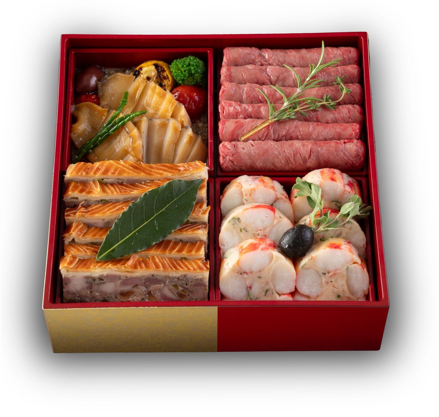 昨年ご好評をいただいた、セルリアンタワー東急ホテルの「お祝い重」。今年は一部のメニューをリニューアルし、新年を祝うにふさわしい華やかな内容で、15台限定にて販売いたします。トリュフ、キャビアをはじめ、伊勢海老、フカヒレ、鮑、オマール海老などの豪華な食材を贅沢な五段重ねでご用意いたします。監修したのは、日本におけるフランス料理界を牽引してきた総料理長 福田順彦。ホテルの総力を結集した45品にも及ぶ「和・洋・中・スイーツ」を、食材の選定から調理法、味付け、盛り付けまで、至高の調和と美しさを突き詰め、完成させました。