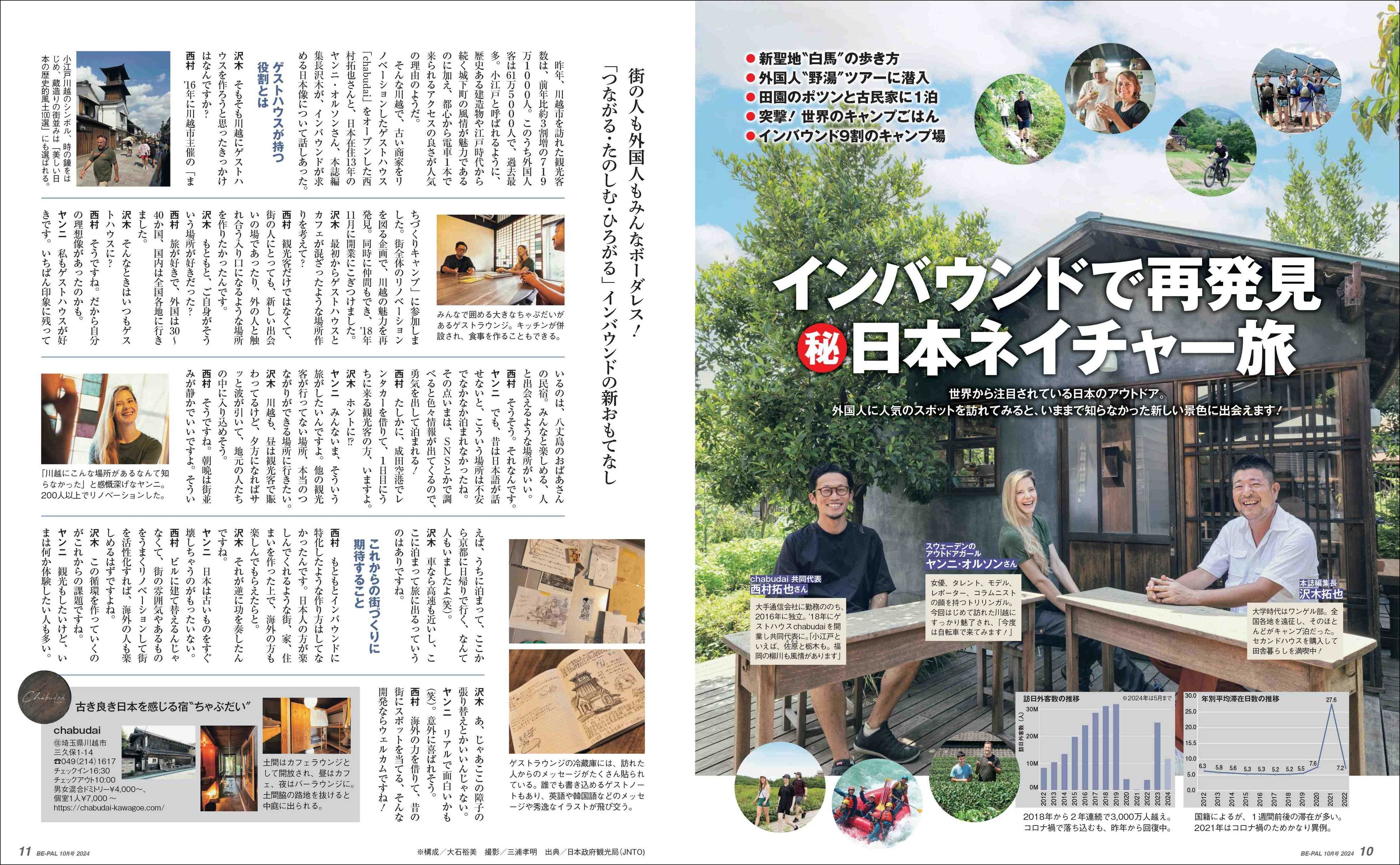 さらに、今号の大特集は「インバウンドで再発見 ㊙日本ネイチャー旅」。訪日外国人急増の理由は、もちろん円安や治安の良さもあるけど、リピーターの多くがいうのは日本の自然の美しさや、出会った人たちの優しさだ。ということで、インバウンドに人気のアウトドアスポットを徹底調査! この特集を読めば行ってみたくなることうけあいです!