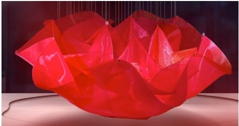 赤いヴェールはカメリアの表現を中心に据えながら、多様に変化し続け、瞬間ごとに異なる表情を見せる。