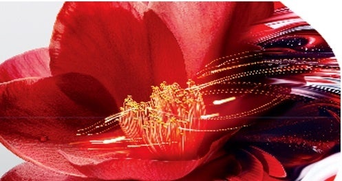 BRAND SHISEIDO を象徴する花椿マークの輪郭を象る赤いヴェールが、しなやかに舞いながらカメリアを象っていく。