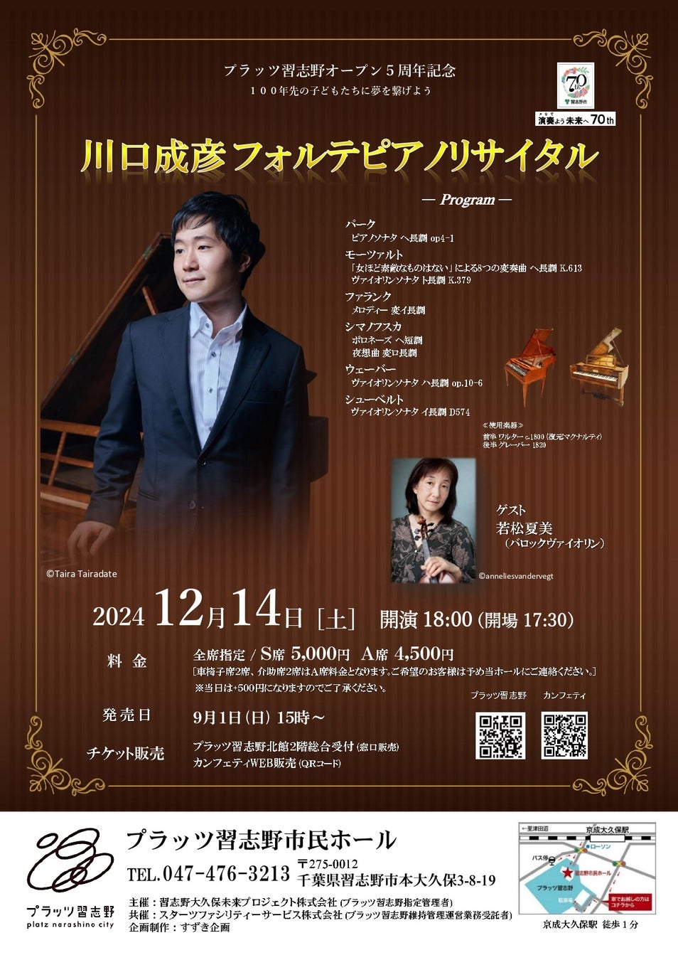 プラッツ習志野オープン5周年記念!『川口成彦フォルテピアノリサイタル』